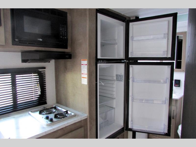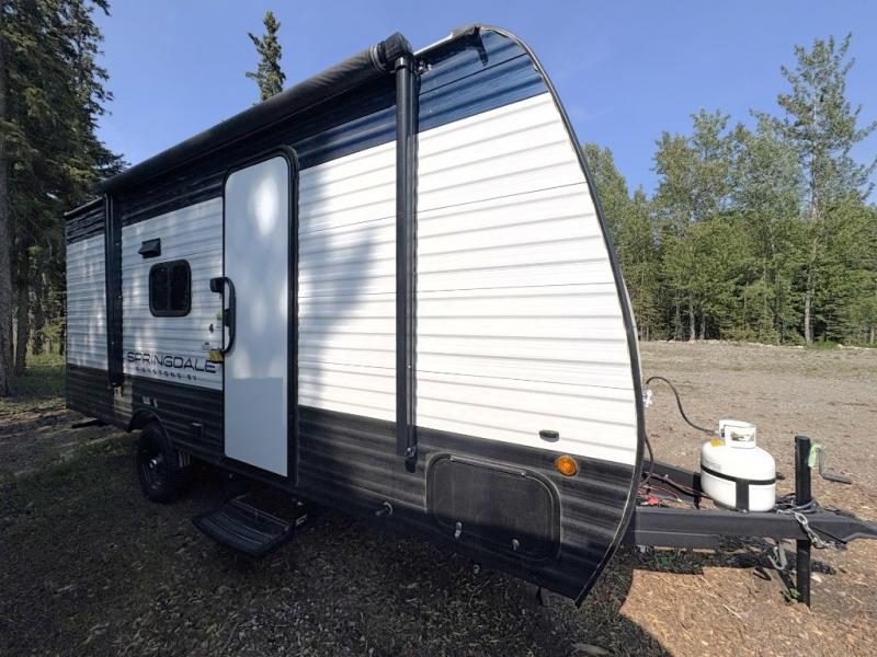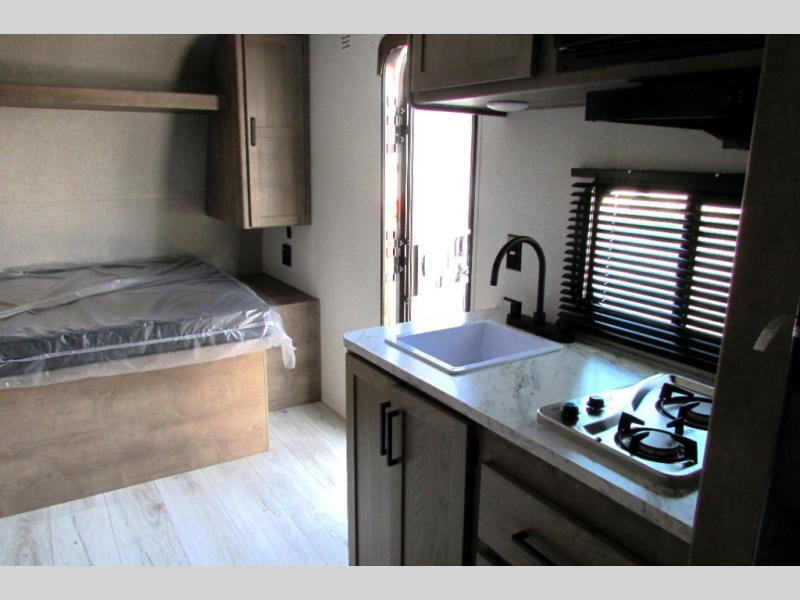 With any Springdale Classic Mini travel trailer by Keystone, you will enjoy lightweight towing thanks to their single-axle! You'll find the XL entry assist handle will make entering and exiting your unit easier than ever, and the power awning will provide protection from the sun as you relax in your camp chairs outside. Each model includes blackout night shades, solid wood cabinet doors and drawers, a shower skylight for more standing room, plus many more interior comforts. There is also a 5,000 BTU sidewall A/C and 20K BTU furnace to keep you comfortable, plus a Girard tankless water heater for endless hot showers!