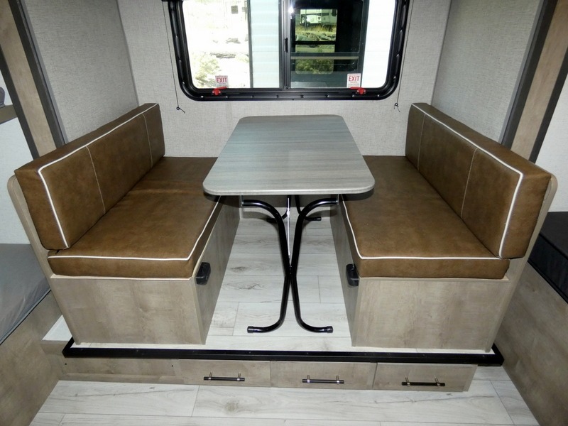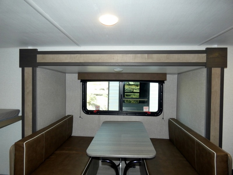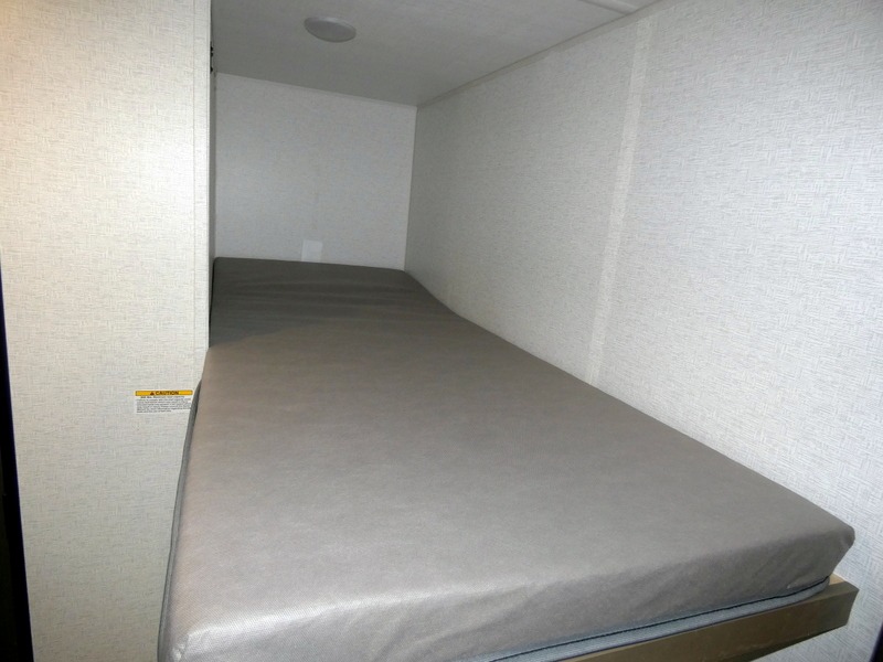 When you say "camping" your kids will immediately think about sleeping on the bunk beds and playing outdoors! There is something about planning the trip that gets everyone excited, and once at your campsite, the excitement grows. You will have your own bed up front as well as a closet and nightstand for your things. The booth dinette doubles as sleeping space and includes drawers for storage, plus the slide provides more floor space. The cook can make warm meals in the galley kitchen, and the full bathroom will keep everyone refreshed and ready for the next day.