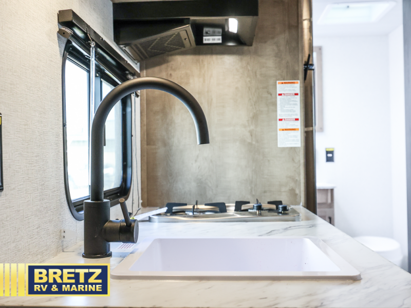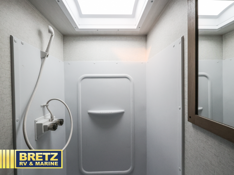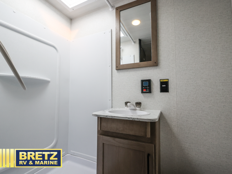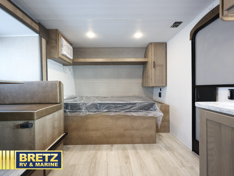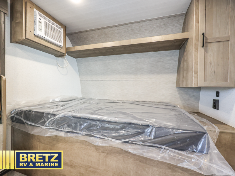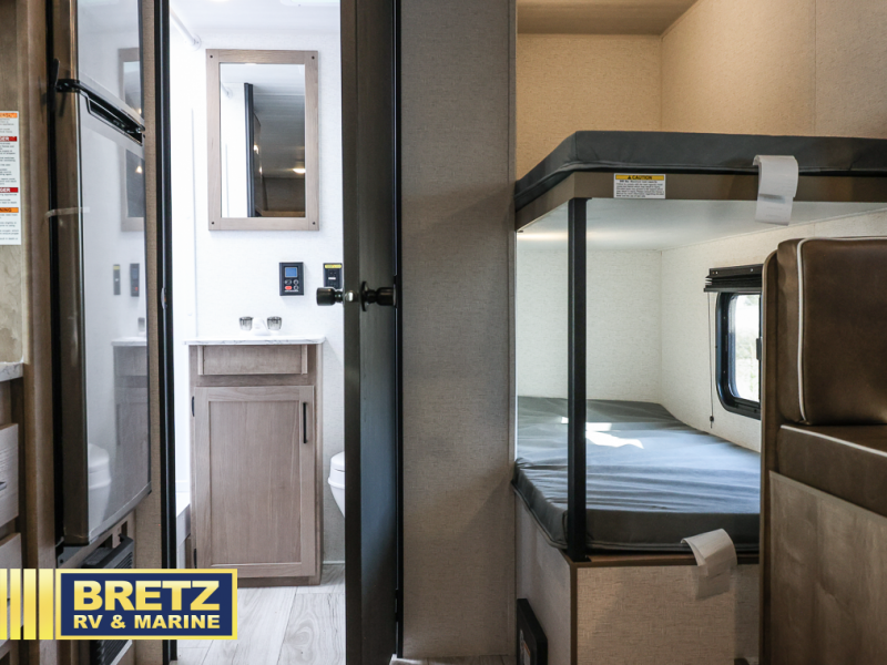 When you say "camping" your kids will immediately think about sleeping on the bunk beds and playing outdoors! There is something about planning the trip that gets everyone excited, and once at your campsite, the excitement grows. You will have your own bed up front as well as a closet and nightstand for your things. The booth dinette doubles as sleeping space and includes drawers for storage, plus the slide provides more floor space. The cook can make warm meals in the galley kitchen, and the full bathroom will keep everyone refreshed and ready for the next day.