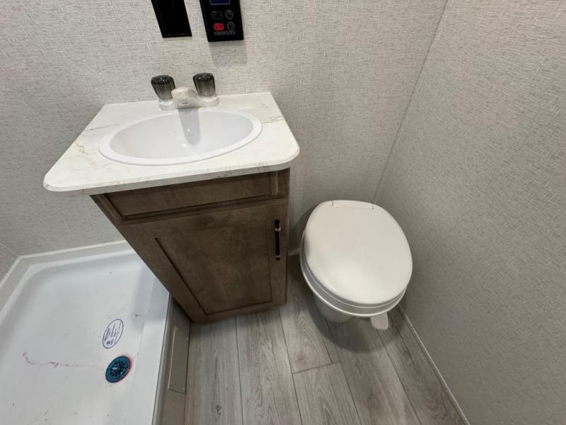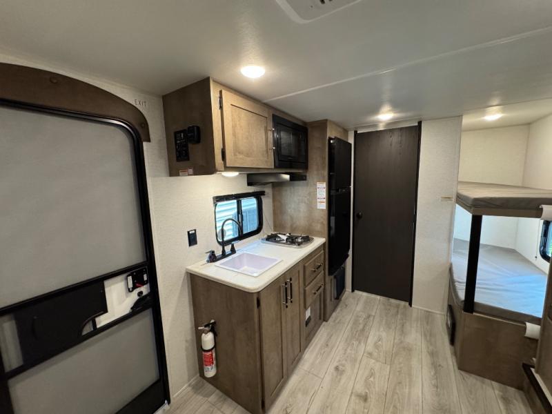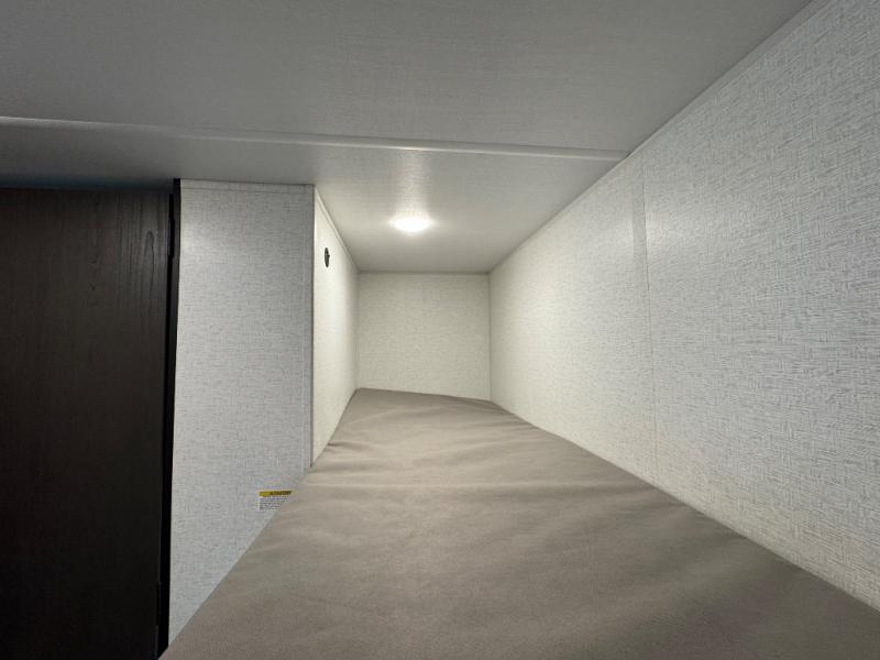 When you say "camping" your kids will immediately think about sleeping on the bunk beds and playing outdoors! There is something about planning the trip that gets everyone excited, and once at your campsite, the excitement grows. You will have your own bed up front as well as a closet and nightstand for your things. The booth dinette doubles as sleeping space and includes drawers for storage, plus the slide provides more floor space. The cook can make warm meals in the galley kitchen, and the full bathroom will keep everyone refreshed and ready for the next day.