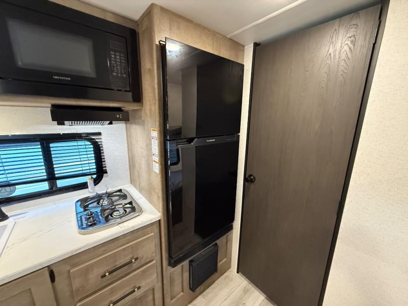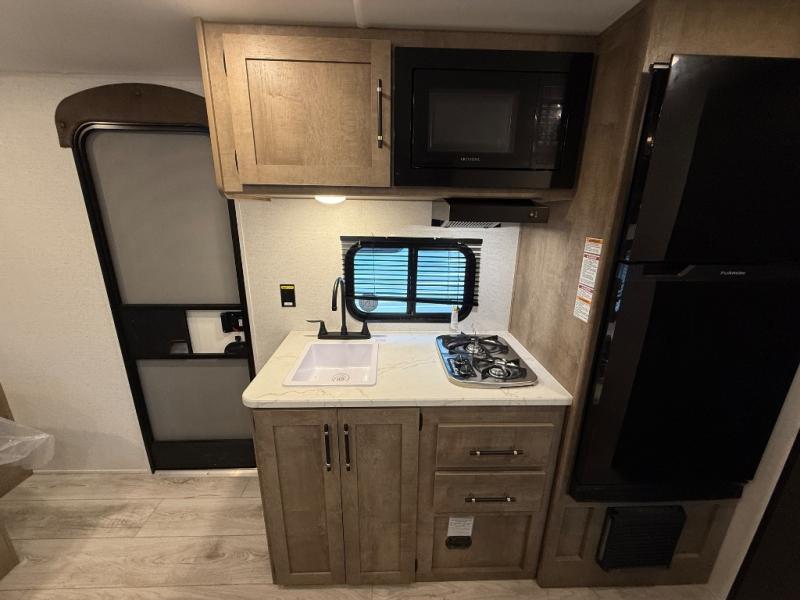 With any Springdale Classic Mini travel trailer by Keystone, you will enjoy lightweight towing thanks to their single-axle! You'll find the XL entry assist handle will make entering and exiting your unit easier than ever, and the power awning will provide protection from the sun as you relax in your camp chairs outside. Each model includes blackout night shades, solid wood cabinet doors and drawers, a shower skylight for more standing room, plus many more interior comforts. There is also a 5,000 BTU sidewall A/C and 20K BTU furnace to keep you comfortable, plus a Girard tankless water heater for endless hot showers!