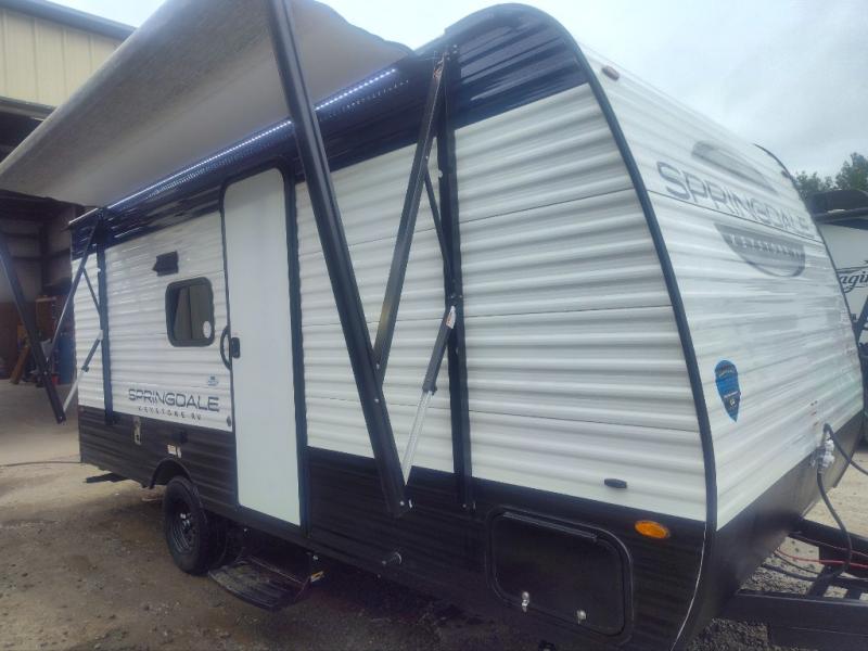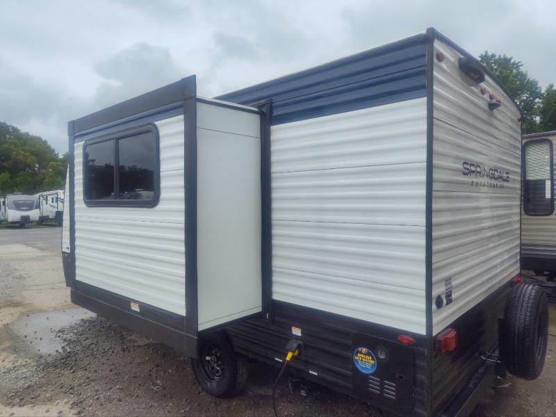 With any Springdale Classic Mini travel trailer by Keystone, you will enjoy lightweight towing thanks to their single axle! You'll find the XL entry assist handle will make entering and exiting your unit easier than ever, and the power awning will provide protection from the sun as you relax in your camp chairs outside. Each model includes blackout night shades, solid wood cabinet doors and drawers, a shower skylight for more standing room, plus many more interior comforts. There is also a 5,000 BTU A/C and 20K BTU furnace to keep you comfortable, plus a Girard tankless water heater for endless hot showers!