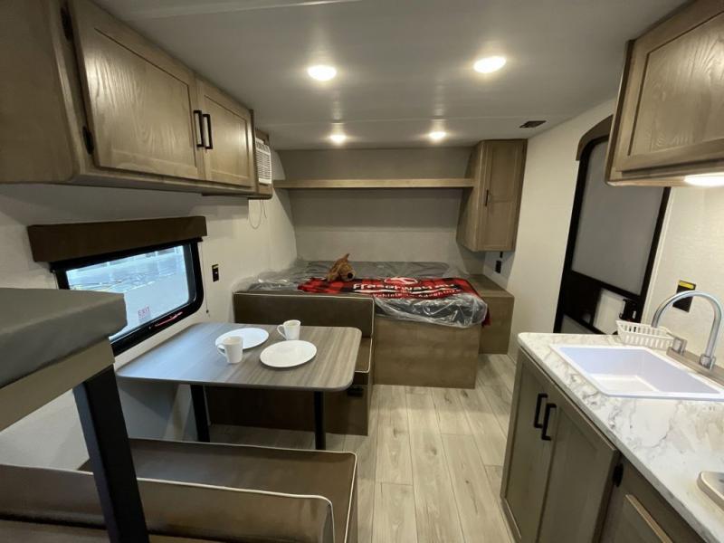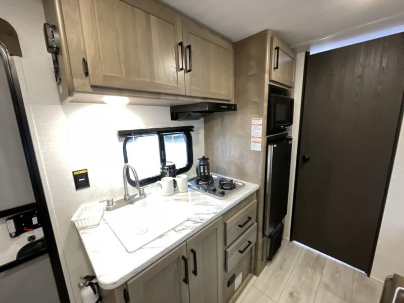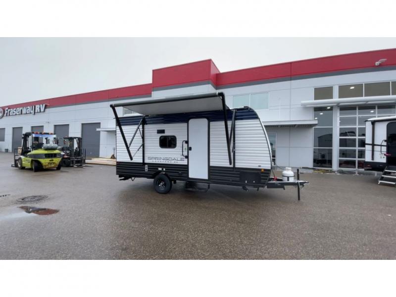 With any Springdale Classic Mini travel trailer by Keystone, you will enjoy lightweight towing thanks to their single-axle! You'll find the XL entry assist handle will make entering and exiting your unit easier than ever, and the power awning will provide protection from the sun as you relax in your camp chairs outside. Each model includes blackout night shades, solid wood cabinet doors and drawers, a shower skylight for more standing room, plus many more interior comforts. There is also a 5,000 BTU sidewall A/C and 20K BTU furnace to keep you comfortable, plus a Girard tankless water heater for endless hot showers!
