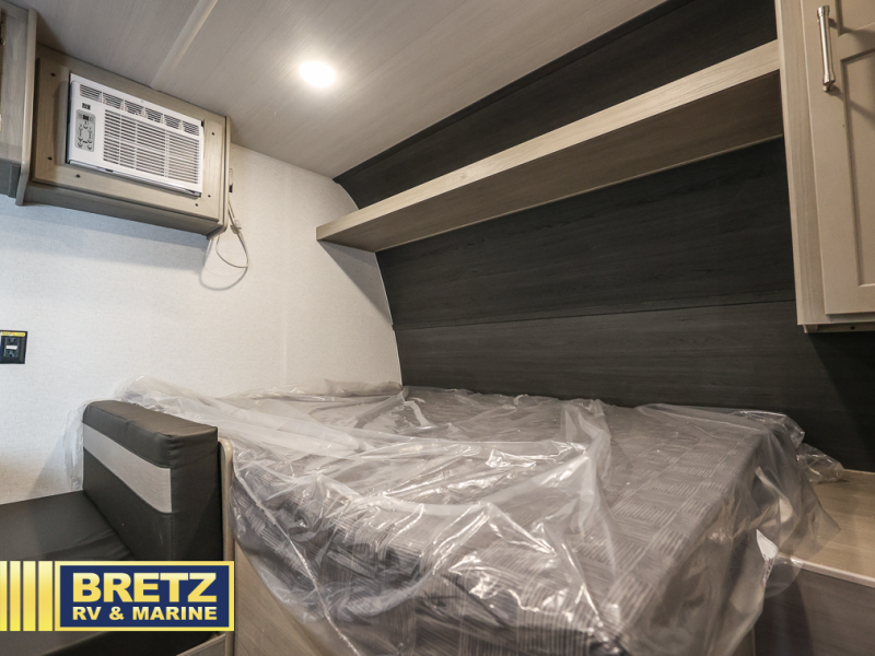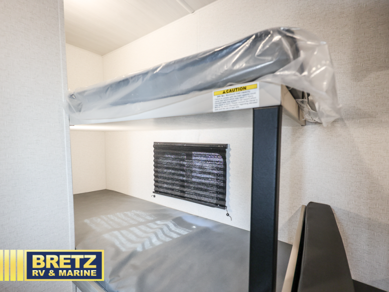 Get ready for outdoor fun with your favorite people when you have this trailer in tow! Once at your campsite, you can easily setup the 10' power awning, grab your camping chairs from the pass-thru storage, and relax or start playing. The cook will love the galley kitchen with the two burner cooktop, plus a refrigerator for cold items. If you like, you can eat inside at the booth dinette which doubles as sleeping space, and of course the kids will love the bunk beds next to the full bathroom. And you will sleep soundly on the front queen bed.