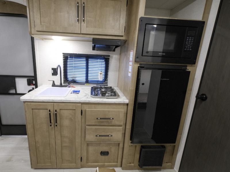 With any Springdale Classic Mini travel trailer by Keystone, you will enjoy lightweight towing thanks to their single-axle! You'll find the XL entry assist handle will make entering and exiting your unit easier than ever, and the power awning will provide protection from the sun as you relax in your camp chairs outside. Each model includes blackout night shades, solid wood cabinet doors and drawers, a shower skylight for more standing room, plus many more interior comforts. There is also a 5,000 BTU sidewall A/C and 20K BTU furnace to keep you comfortable, plus a Girard tankless water heater for endless hot showers!