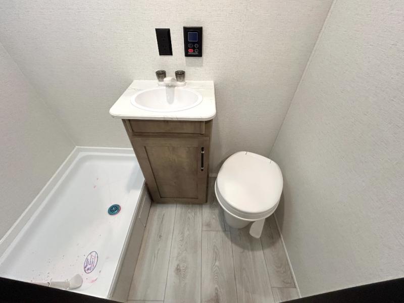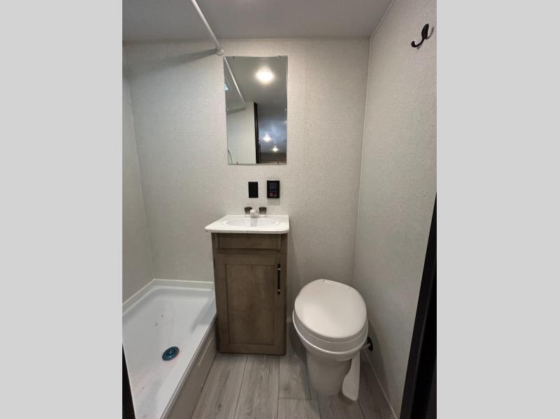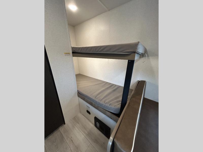 Get ready for outdoor fun with your favorite people when you have this trailer in tow! Once at your campsite, you can easily setup the 10' power awning, grab your camping chairs from the pass-thru storage, and relax or start playing. The cook will love the galley kitchen with the two burner cooktop, plus a refrigerator for cold items. If you like, you can eat inside at the booth dinette which doubles as sleeping space, and of course the kids will love the bunk beds next to the full bathroom. And you will sleep soundly on the front queen bed.
