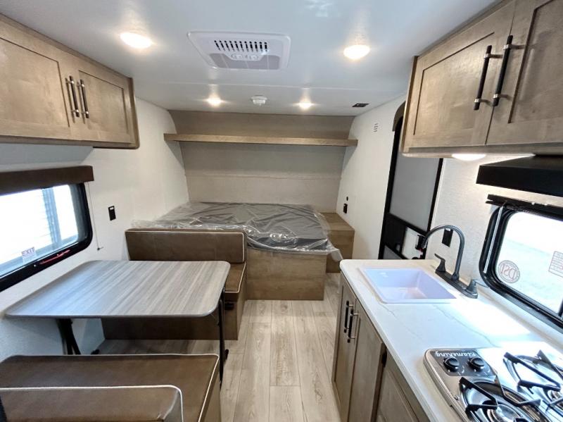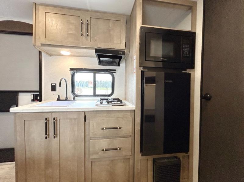 With any Springdale Classic Mini travel trailer by Keystone, you will enjoy lightweight towing thanks to their single-axle! You'll find the XL entry assist handle will make entering and exiting your unit easier than ever, and the power awning will provide protection from the sun as you relax in your camp chairs outside. Each model includes blackout night shades, solid wood cabinet doors and drawers, a shower skylight for more standing room, plus many more interior comforts. There is also a 5,000 BTU sidewall A/C and 20K BTU furnace to keep you comfortable, plus a Girard tankless water heater for endless hot showers!