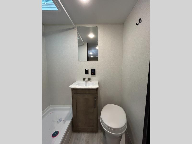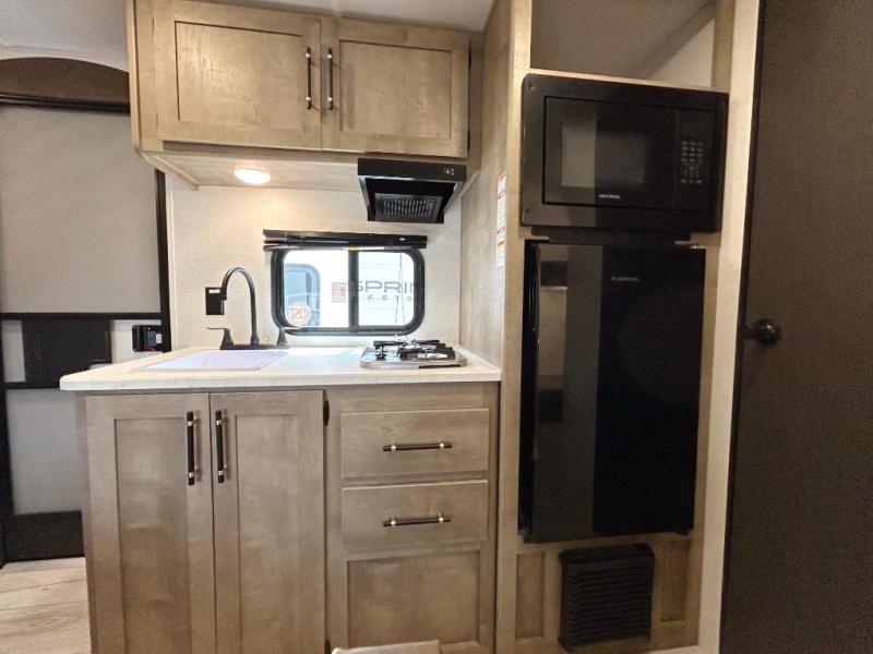 With any Springdale Classic Mini travel trailer by Keystone, you will enjoy lightweight towing thanks to their single-axle! You'll find the XL entry assist handle will make entering and exiting your unit easier than ever, and the power awning will provide protection from the sun as you relax in your camp chairs outside. Each model includes blackout night shades, solid wood cabinet doors and drawers, a shower skylight for more standing room, plus many more interior comforts. There is also a 5,000 BTU sidewall A/C and 20K BTU furnace to keep you comfortable, plus a Girard tankless water heater for endless hot showers!