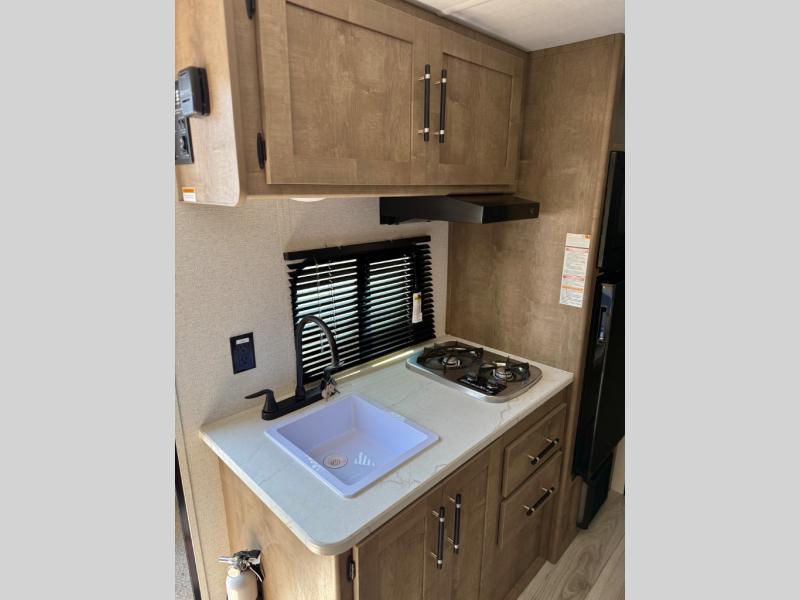 With any Springdale Classic Mini travel trailer by Keystone, you will enjoy lightweight towing thanks to their single-axle! You'll find the XL entry assist handle will make entering and exiting your unit easier than ever, and the power awning will provide protection from the sun as you relax in your camp chairs outside. Each model includes blackout night shades, solid wood cabinet doors and drawers, a shower skylight for more standing room, plus many more interior comforts. There is also a 5,000 BTU sidewall A/C and 20K BTU furnace to keep you comfortable, plus a Girard tankless water heater for endless hot showers!
