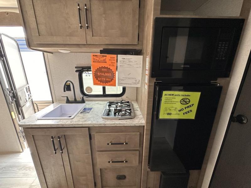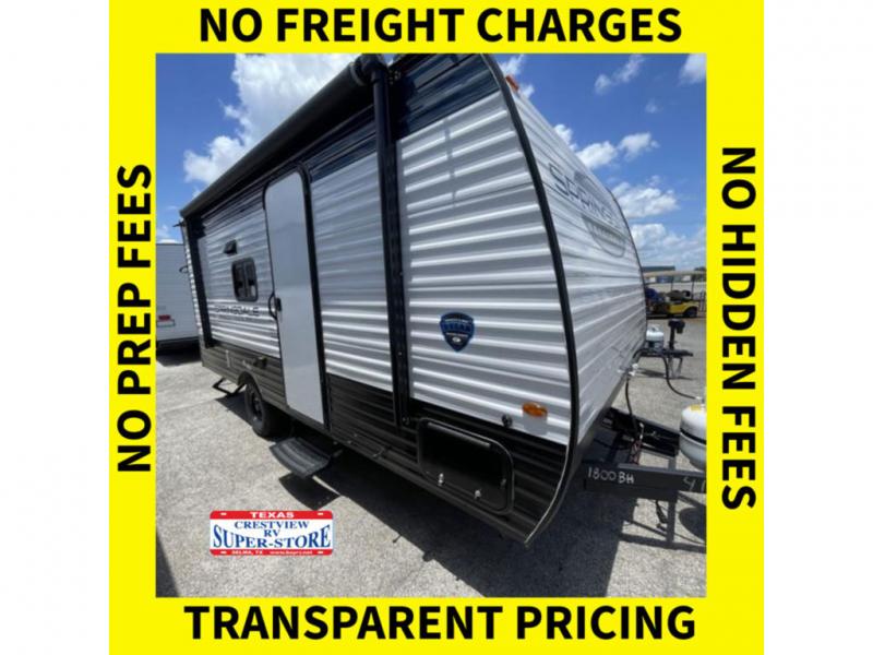 With any Springdale Classic Mini travel trailer by Keystone, you will enjoy lightweight towing thanks to their single-axle! You'll find the XL entry assist handle will make entering and exiting your unit easier than ever, and the power awning will provide protection from the sun as you relax in your camp chairs outside. Each model includes blackout night shades, solid wood cabinet doors and drawers, a shower skylight for more standing room, plus many more interior comforts. There is also a 5,000 BTU sidewall A/C and 20K BTU furnace to keep you comfortable, plus a Girard tankless water heater for endless hot showers!
