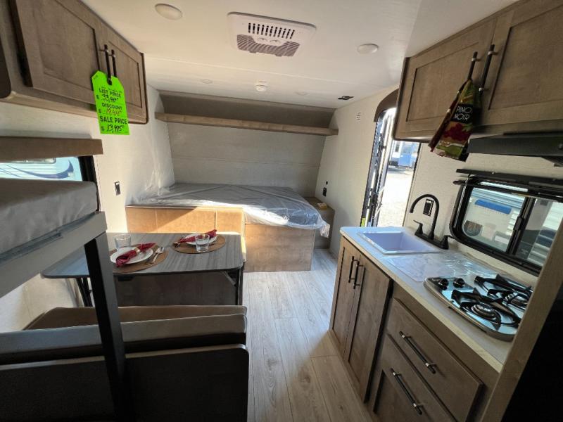 Step into the 2025 Springdale 1800BH and you’re welcomed by a bright, efficient layout that makes smart use of every inch. The front queen bed creates a cozy, inviting place to unwind, while the central living area offers a comfortable dinette and a well-arranged kitchen with all the essentials for easy meals on the road. Large windows bring in natural light, giving the interior a warm, open feel that’s perfect for both quick weekend getaways and longer adventures. Despite its compact size, the space feels thoughtfully designed and surprisingly comfortable.