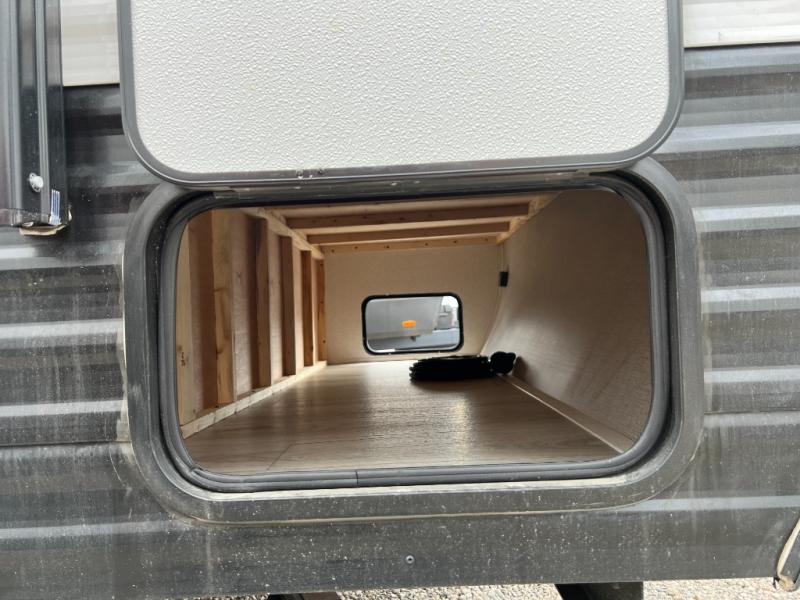 Get ready for outdoor fun with your favorite people when you have this trailer in tow! Once at your campsite, you can easily setup the 10' power awning, grab your camping chairs from the pass-thru storage, and relax or start playing. The cook will love the galley kitchen with the two burner cooktop, plus a refrigerator for cold items. If you like, you can eat inside at the booth dinette which doubles as sleeping space, and of course the kids will love the bunk beds next to the full bathroom. And you will sleep soundly on the front queen bed.