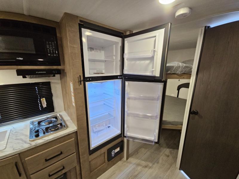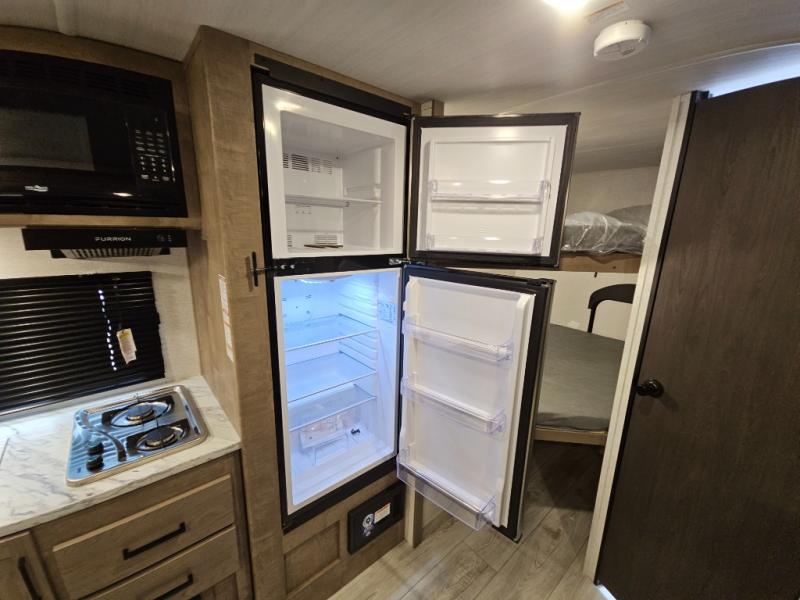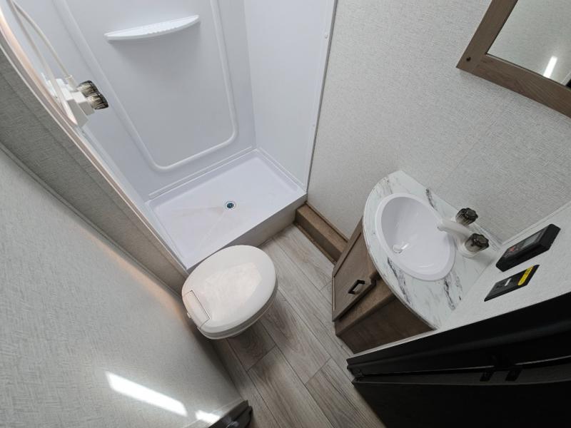 With any Springdale Classic Mini travel trailer by Keystone, you will enjoy lightweight towing thanks to their single-axle! You'll find the XL entry assist handle will make entering and exiting your unit easier than ever, and the power awning will provide protection from the sun as you relax in your camp chairs outside. Each model includes blackout night shades, solid wood cabinet doors and drawers, a shower skylight for more standing room, plus many more interior comforts. There is also a 5,000 BTU sidewall A/C and 20K BTU furnace to keep you comfortable, plus a Girard tankless water heater for endless hot showers!