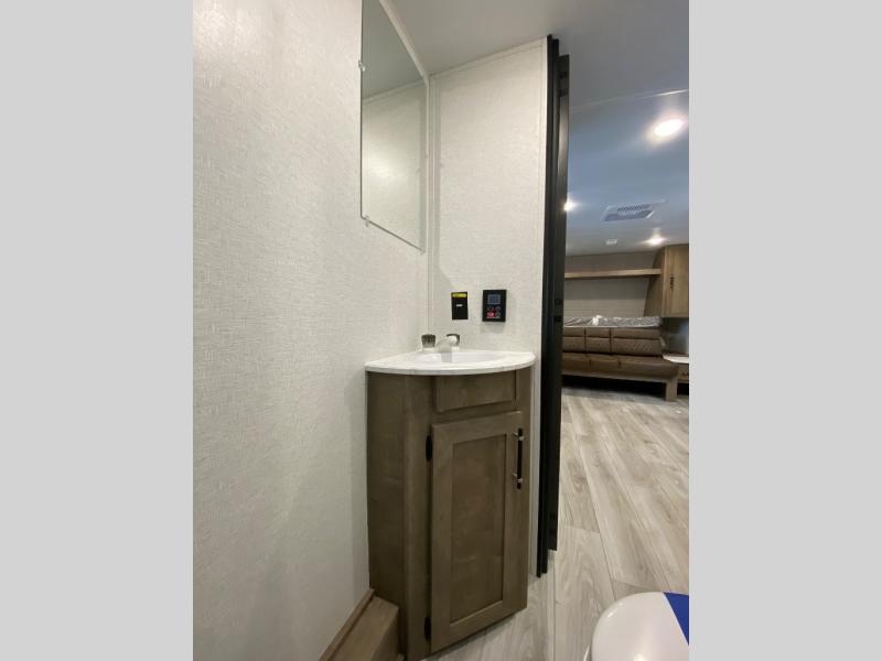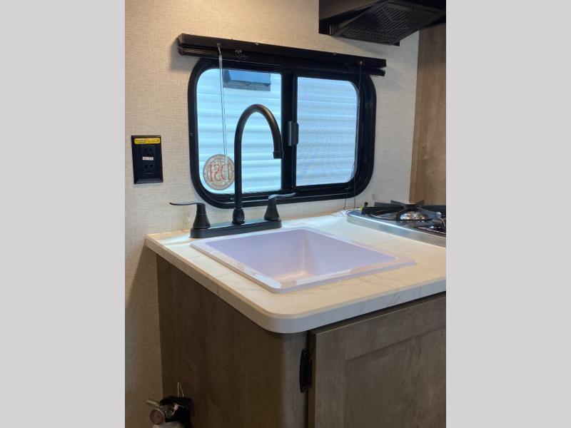 With any Springdale Classic Mini travel trailer by Keystone, you will enjoy lightweight towing thanks to their single-axle! You'll find the XL entry assist handle will make entering and exiting your unit easier than ever, and the power awning will provide protection from the sun as you relax in your camp chairs outside. Each model includes blackout night shades, solid wood cabinet doors and drawers, a shower skylight for more standing room, plus many more interior comforts. There is also a 5,000 BTU sidewall A/C and 20K BTU furnace to keep you comfortable, plus a Girard tankless water heater for endless hot showers!