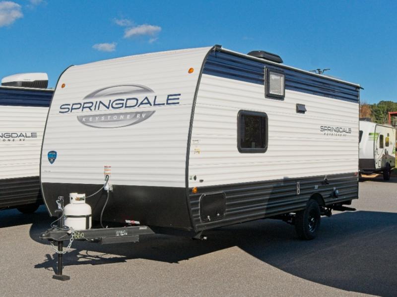The Keystone Springdale Classic Mini 1700FQ is the perfect compact travel trailer for couples or small families looking to enjoy the great outdoors with all the comforts of home. Designed for lightweight towing, this single-axle model is easy to maneuver and ideal for weekend getaways or cross-country adventures.