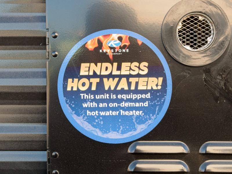 Enjoy relaxing under the 10' power awning, and take advantage of the XL entry assist handle for easy access. With solid wood cabinet doors, blackout night shades, and a shower skylight, the interior feels both functional and inviting.