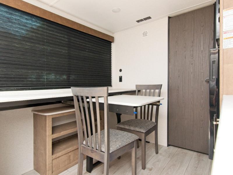 Experience the perfect getaway with the Keystone Springdale Classic Mini 1710MB travel trailer, designed for couples who value comfort and convenience. The queen Murphy bed transforms into a fold-down sofa, maximizing your living space. Prepare delicious meals on the two-burner gas cooktop and keep your leftovers fresh in the 3.3 cu. ft. 12V refrigerator. The versatile countertop with two chairs can serve as a dining area or a workspace, and the full rear bath offers all the comforts of home.