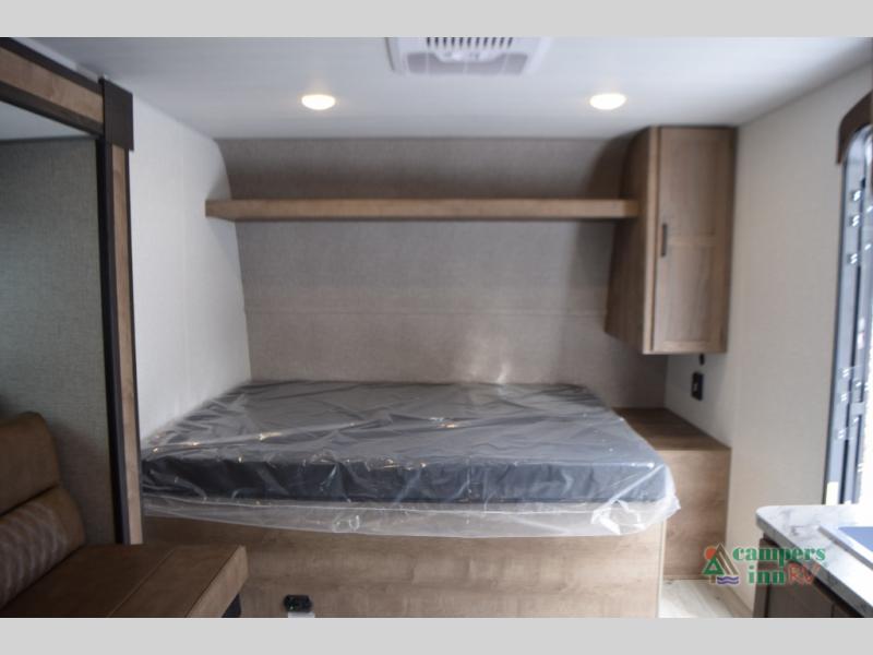 Queen bed at the front of the unit for a restful night’s sleep