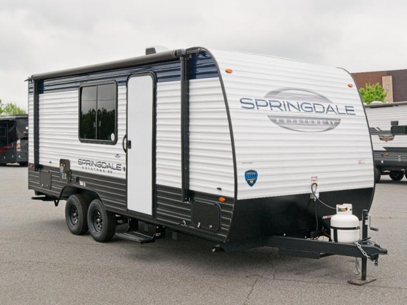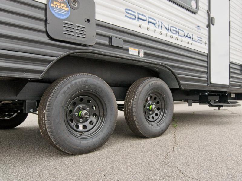 Effortless Towing and Comfortable Living: Thanks to its dual axle design, the Springdale Classic Mini offers superior towing stability. The XL entry assist handle makes it easy to enter and exit, while the 5,000 BTU sidewall A/C and 20K BTU furnace ensure your comfort during all seasons. Plus, the Girard tankless water heater provides endless hot water for showers, so you can enjoy a long, relaxing shower after a day of adventure.