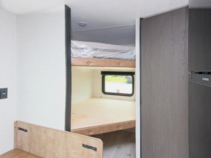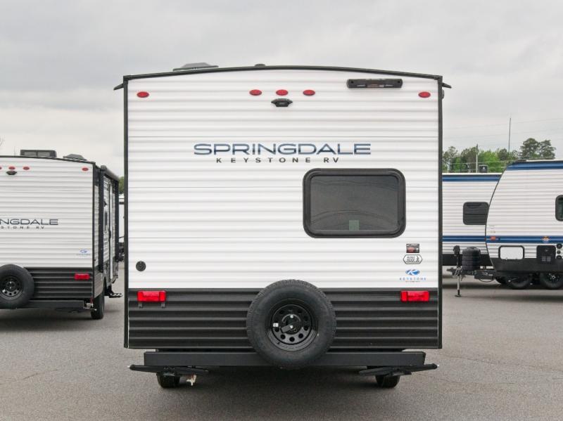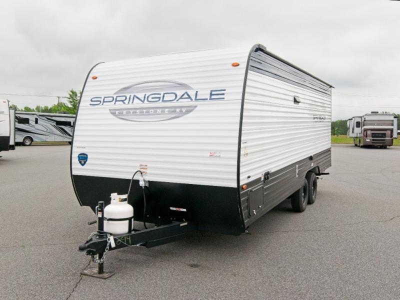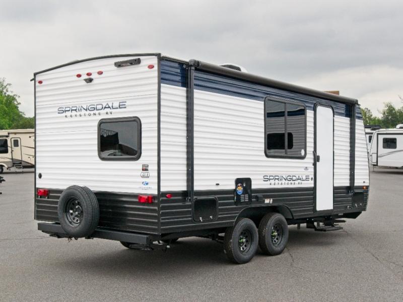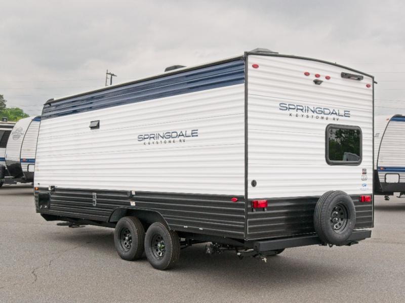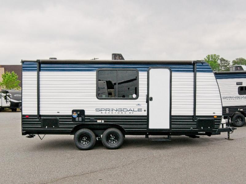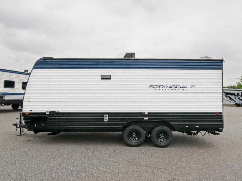 The Keystone Springdale Classic Mini 2300MBBH Travel Trailer is perfect for family adventures, offering double-size bunks for extra sleeping space and a 15' power awning for outdoor comfort.