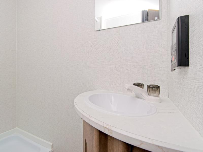 Convenient Rear Corner Bath: The rear corner bath features a tub, toilet, and sink, giving you all the amenities you need to freshen up after a day of outdoor fun. It's the perfect place to relax and refresh, making it feel like home no matter where your travels take you.