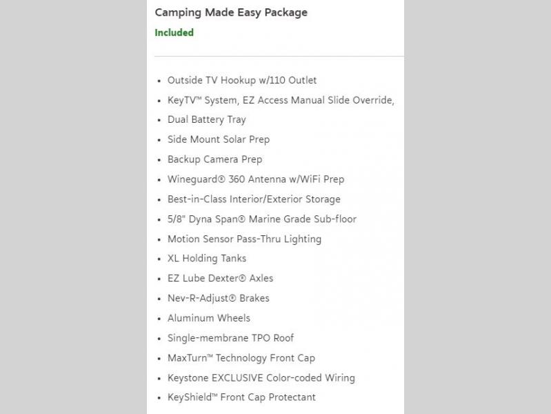 | Awning Info | 10' and 19' Electric with Friction-Hinge Adjustment, LED Lights, and Manual Override |