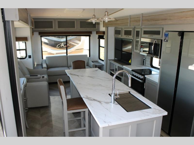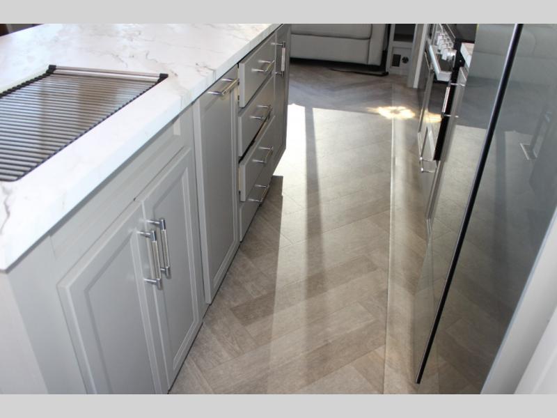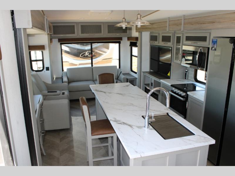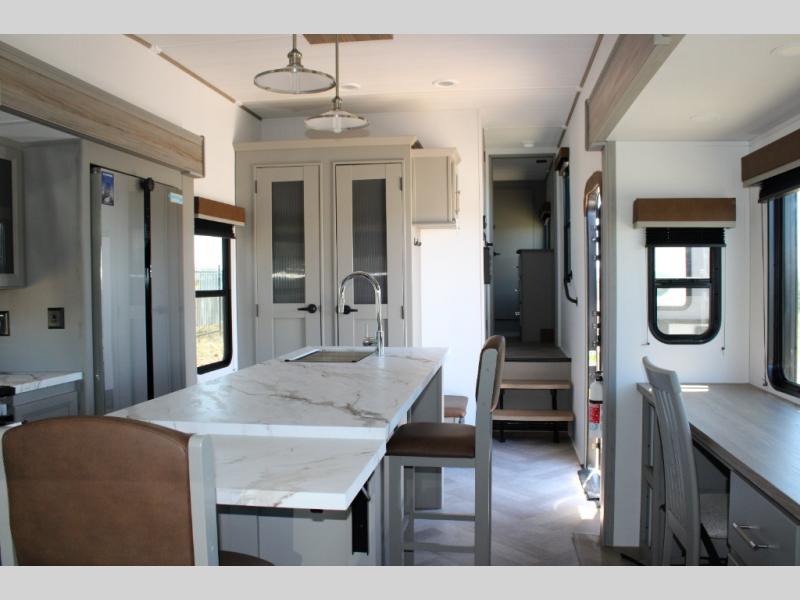Massive 7' Kitchen Island: Prep meals, set up snacks, or gather around with friends. This oversized island is the social hub of your rolling getaway.