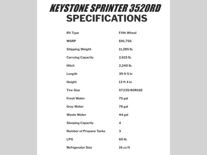 Keystone Sprinter fifth wheel 3520RDS highlights: