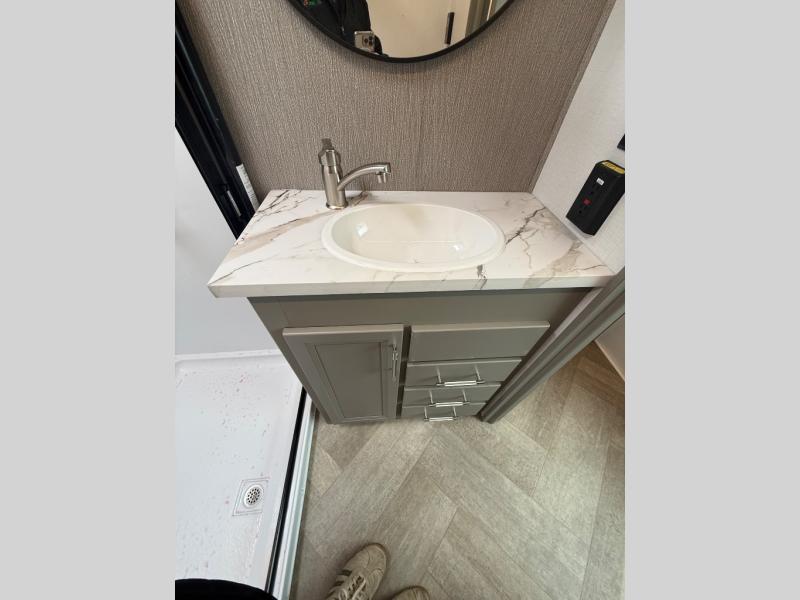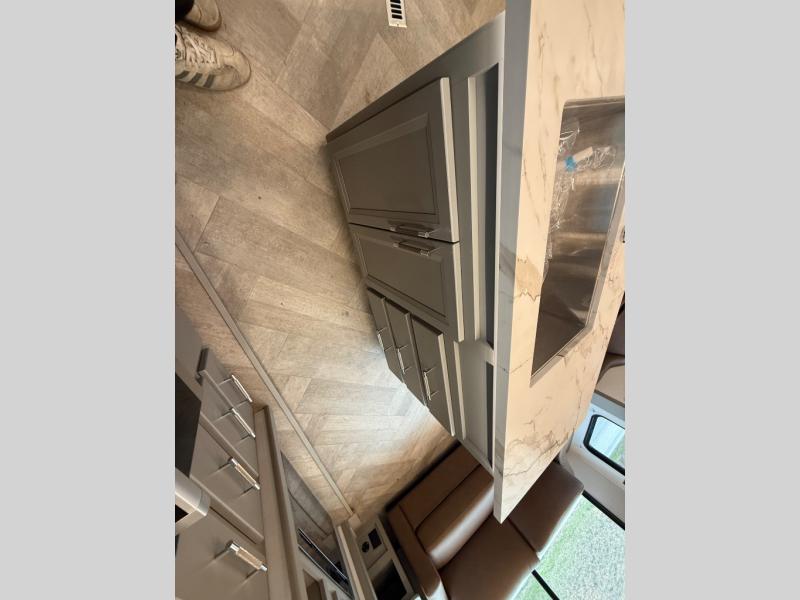 - Seamless Marbled Countertops: A touch of elegance for your RV kitchen.