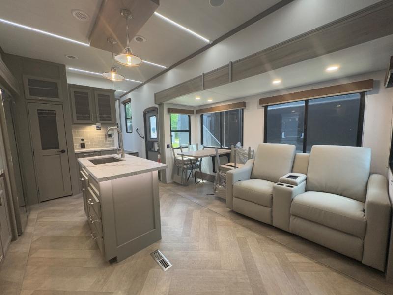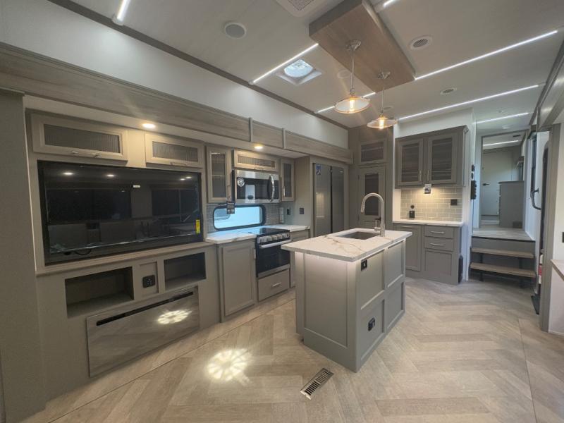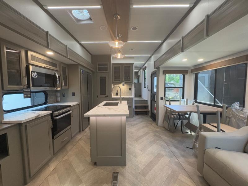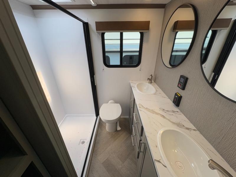 The Keystone Sprinter 3900DBL fifth wheel is designed for families who need maximum comfort and functionality on the road. With two full bathrooms, a rear private bunkhouse, and a loft, this model provides space for everyone whether you’re on a weekend getaway or extended adventure. Packed with modern amenities and residential touches, it blends luxury and practicality for unforgettable camping experiences.