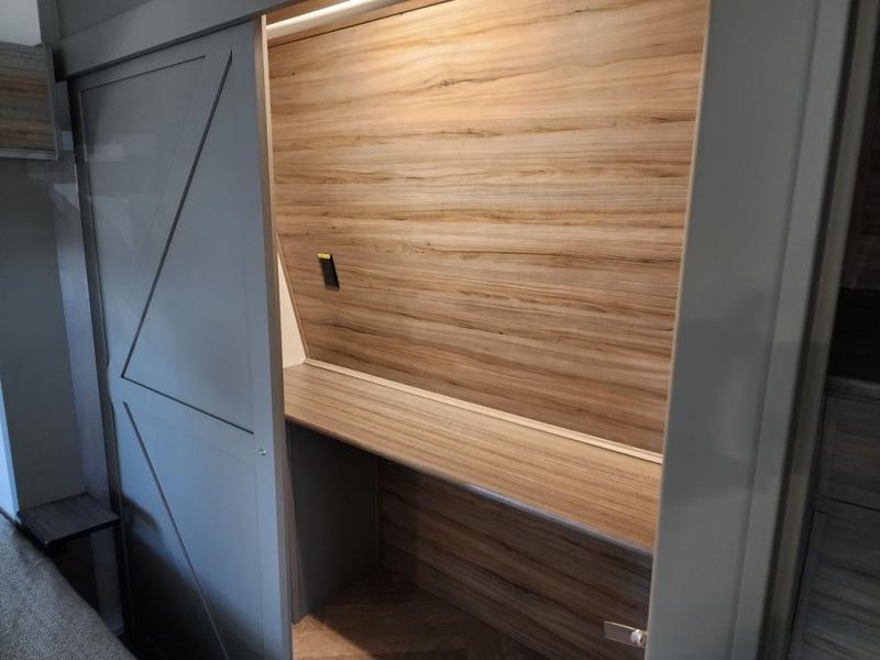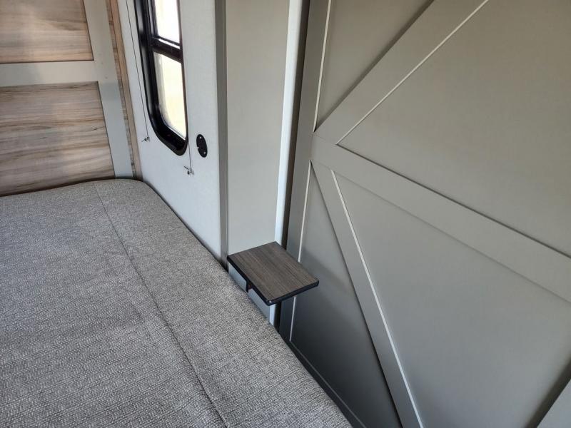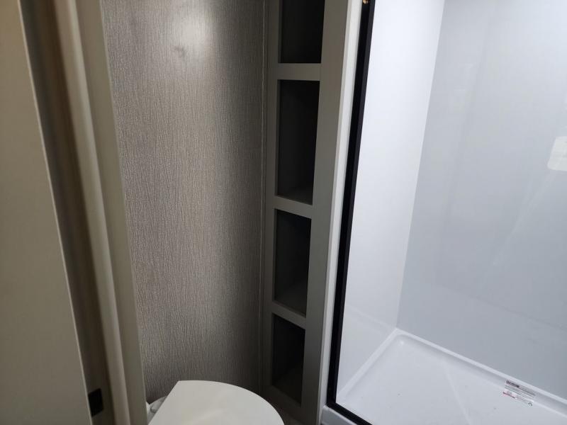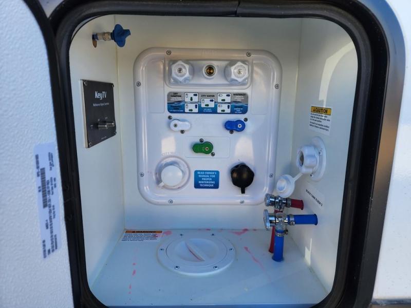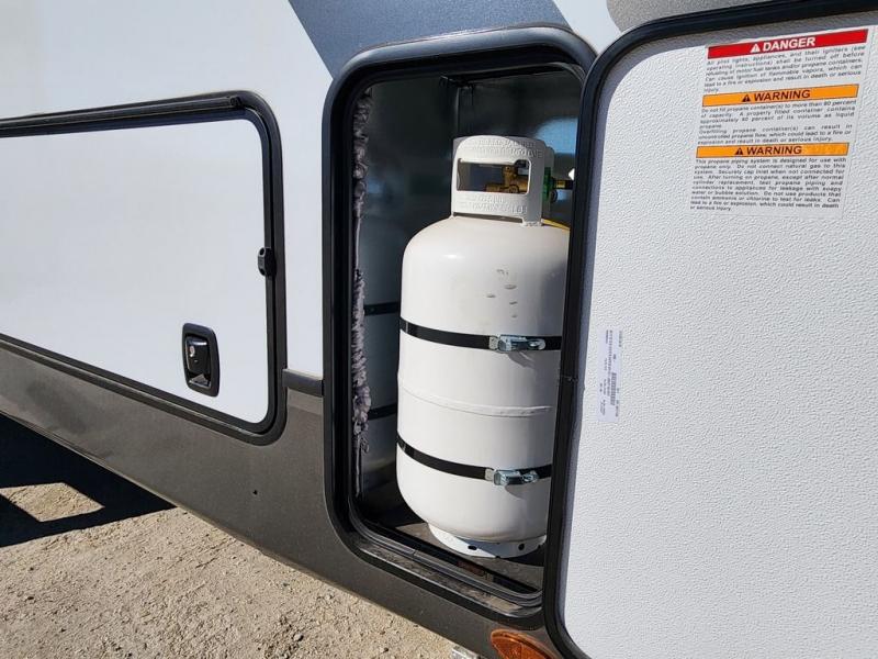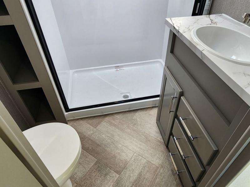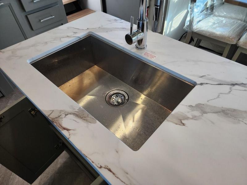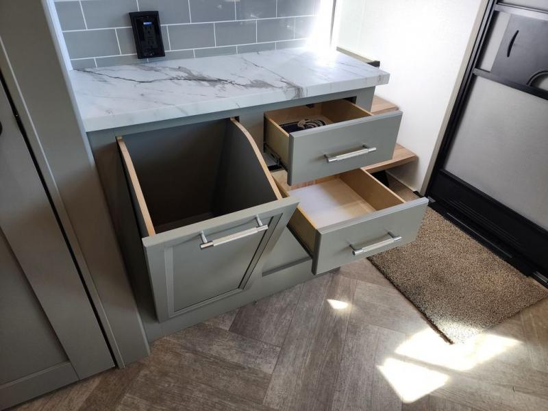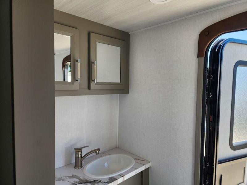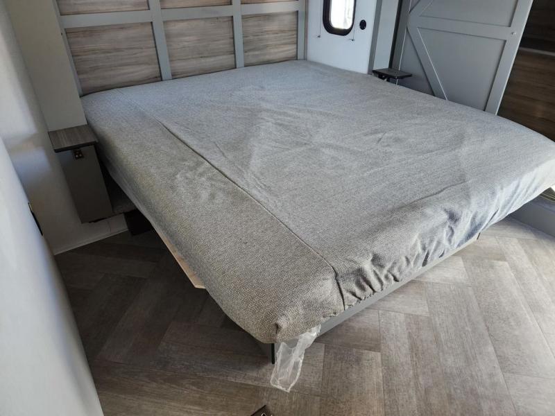The Sprinter fifth wheels by Keystone feature spacious living areas, plenty of storage, and outstanding towability. Each unit is constructed with 2" aluminum framed and laminated sidewalls, a fully walkable roof, and dual layer insulation to help extend your camping season. The heated pass-through storage includes lockable slam latch baggage doors so you can easily pack your gear, and the one-touch 4-point leveling system features return hookup memory to have you set up in no-time. Head inside to find Congoleum vinyl flooring, Thomas Payne luxury collection furniture, residential style seamless marbled countertops, and an upgraded bedspread to name a few comforts. The Sprinter also includes a Girard tankless on-demand water heater, a central command center, plus a 30k BTU furnace and two A/C units to ensure your comfort!