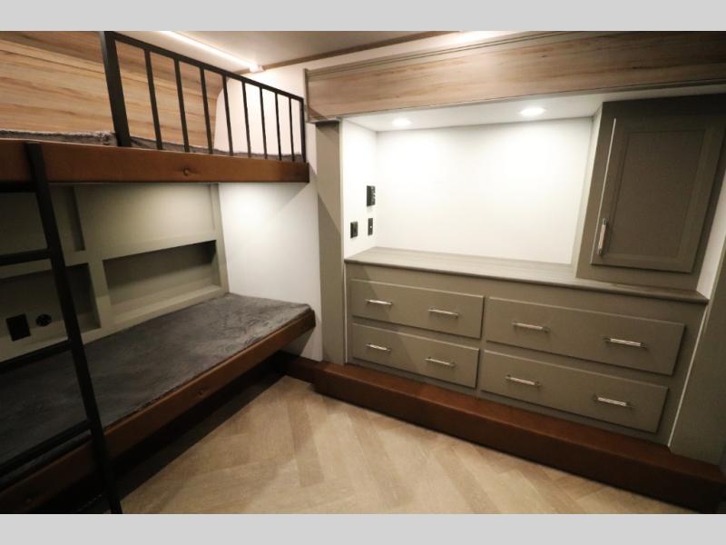 Expansive Interior: Built on a 100" wide-body frame, the Sprinter 3980FBS offers unparalleled living space, featuring a full-profile upper deck that enhances both comfort and storage.