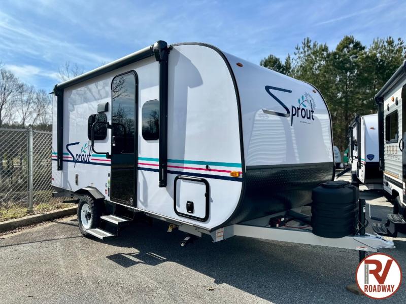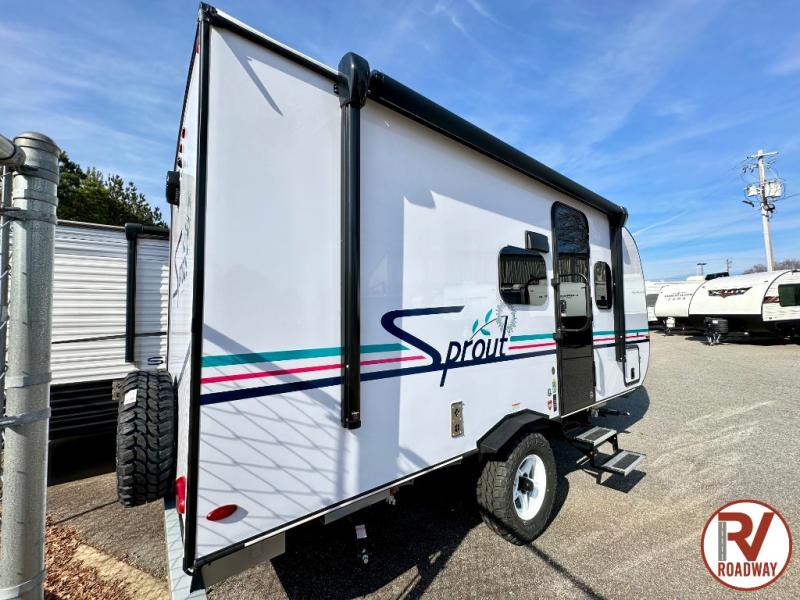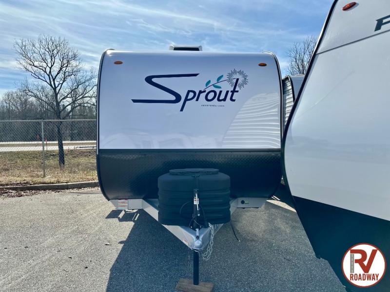 The Sprout travel trailers by Keystone are premium single-axle units that are sure to make an impression at the campground. Each one is built with an exclusive automotive-finished aluminum exterior, a walkable roof, and a 100% composite floor for added durability. There are also tinted safety glass windows, quick drop stabilizer jacks, and an exterior shower with hot and cold water. Inside, you will enjoy blackout night shades and a 6' 6" interior height, along with an ultra bright LED light strip and solid surface countertops in the kitchen. The 13,500 BTU A/C and 20,000 BTU furnace will keep you comfortable, and the Suburban tankless water heater is a convenience you won't want to camp without!