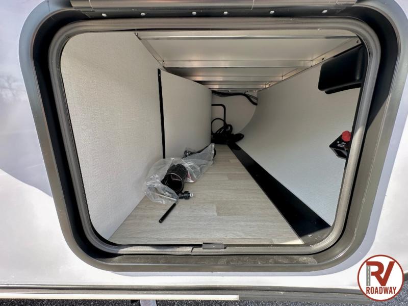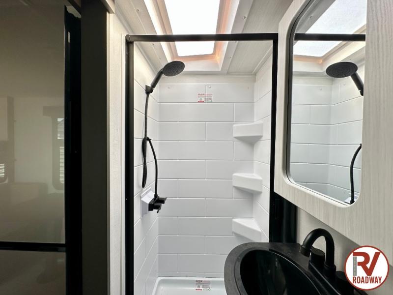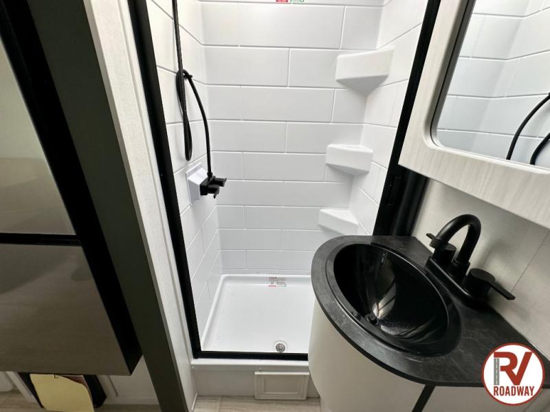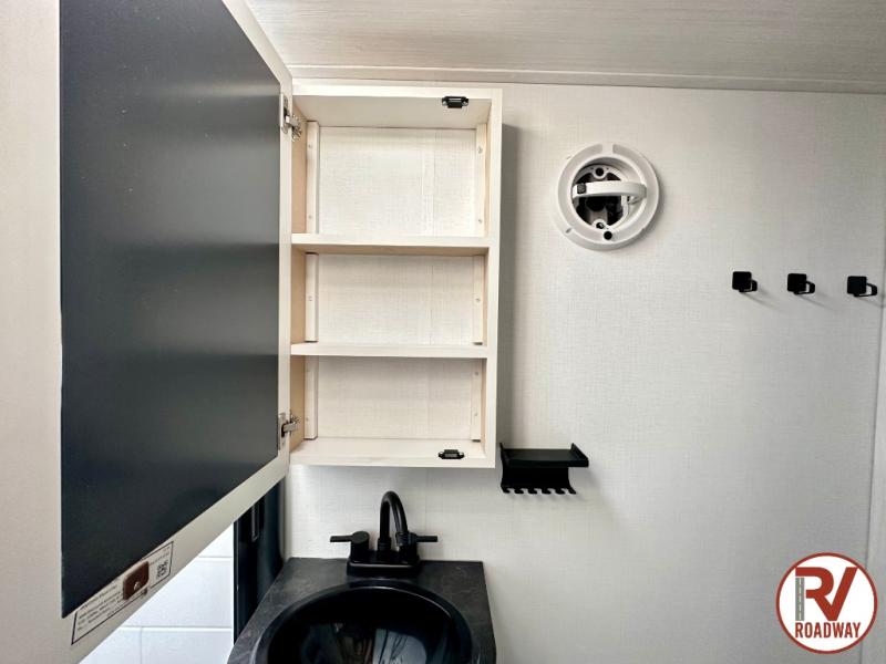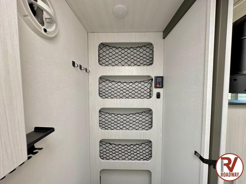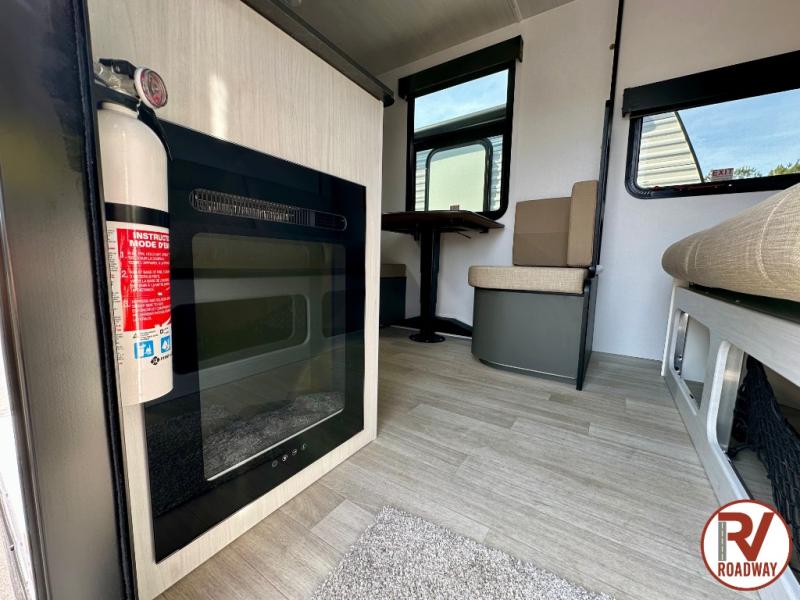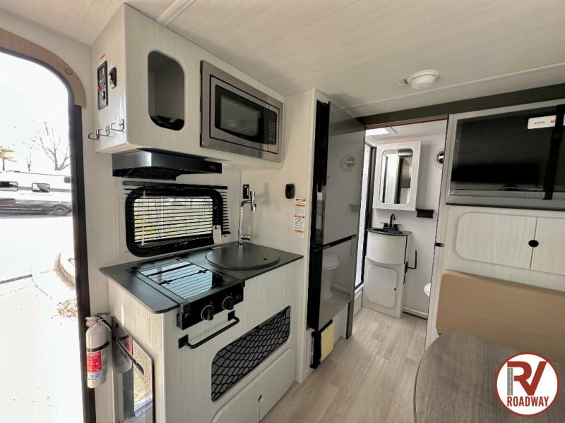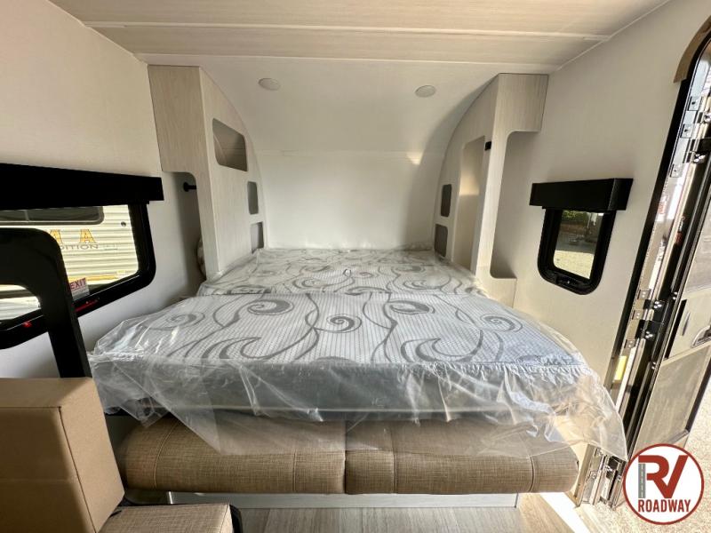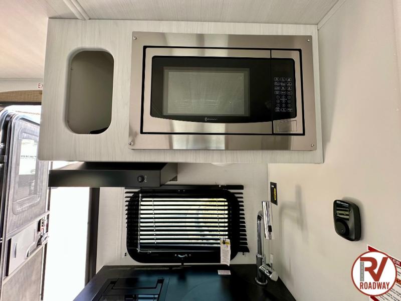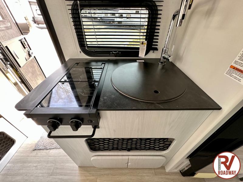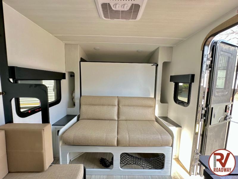This single axle trailer is both cozy and versatile since there is a fold down sofa/Murphy bed up front! Now you can easily convert seating space into sleeping space, plus there are dual bedside closets to keep your things tidy. A two burner cooktop and air fryer/convection microwave will let you cook meals each day, and a booth dinette provides a place to dine together. You can also choose to add the optional flip-up bunk above the dinette if you need more sleeping space. And don't overlook the full rear bath that will allow you to freshen up without having to leave your camper!