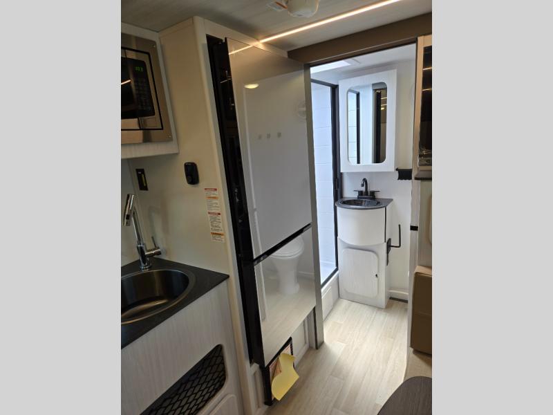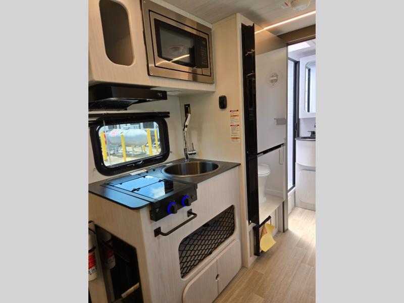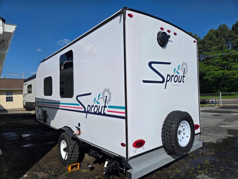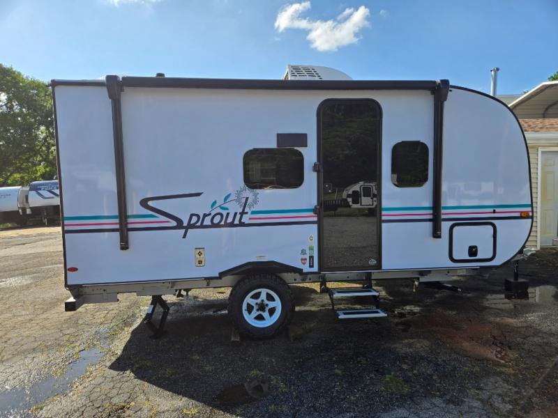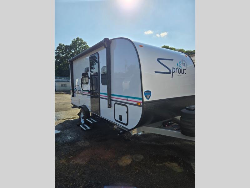 The Sprout travel trailers by Keystone are premium single-axle units that are sure to make an impression at the campground. Each one is built with an exclusive automotive-finished aluminum exterior, a walkable roof, and a 100% composite floor for added durability. There are also tinted safety glass windows, quick drop stabilizer jacks, and an exterior shower with hot and cold water. Inside, you will enjoy blackout night shades and a 6' 6" interior height, along with an ultra bright LED light strip and solid surface countertops in the kitchen. The 13,500 BTU A/C and 20,000 BTU furnace will keep you comfortable, and the Suburban tankless water heater is a convenience you won't want to camp without!
