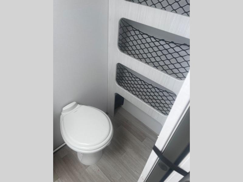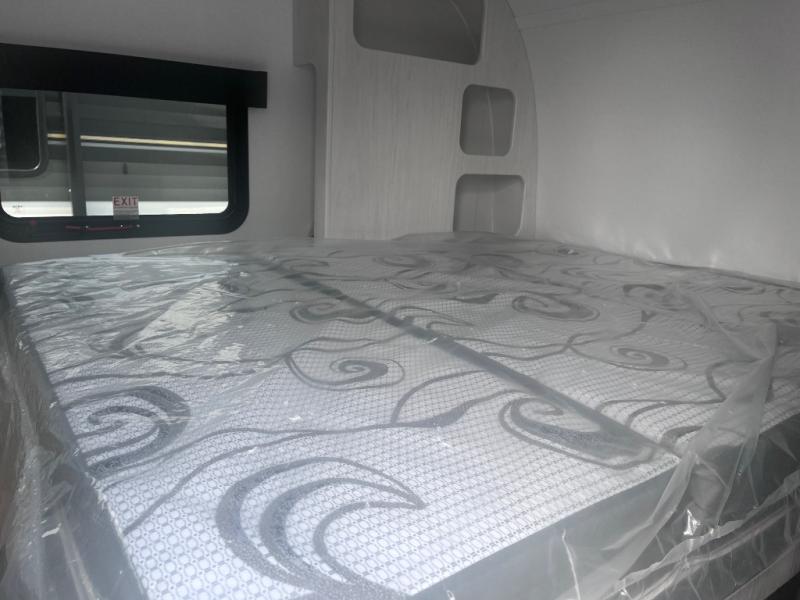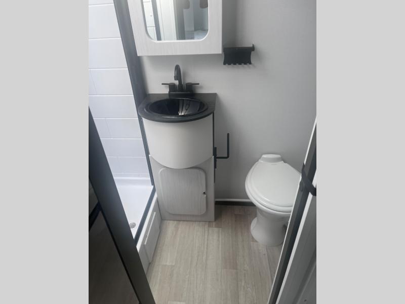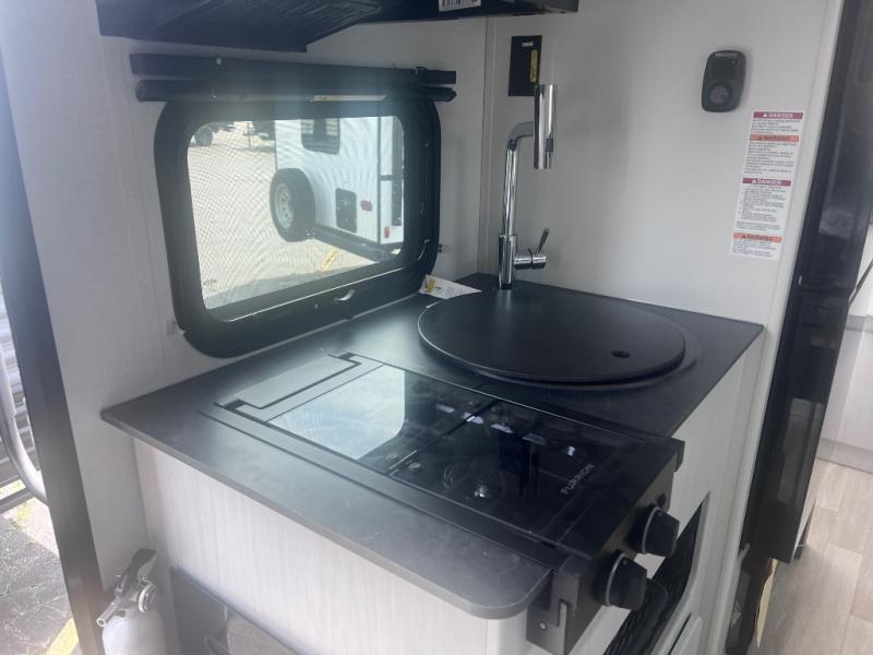 This single axle trailer is both cozy and versatile since there is a fold down sofa/Murphy bed up front! Now you can easily convert seating space into sleeping space, plus there are dual bedside closets to keep your things tidy. A two burner cooktop and air fryer/convection microwave will let you cook meals each day, and a booth dinette provides a place to dine together. You can also choose to add the optional flip-up bunk above the dinette if you need more sleeping space. And don't overlook the full rear bath that will allow you to freshen up without having to leave your camper!