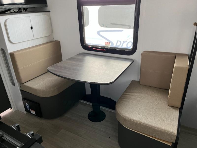 Step inside the Sprout 15RBS and enjoy an open, welcoming living area that feels larger than its size. Large panoramic windows fill the space with natural light and bring your surroundings into view, creating a connection to the outdoors. The convertible dinette provides a cozy place to enjoy meals, play games, or just relax, and easily transforms into a sleeping surface for flexibility when you have guests.