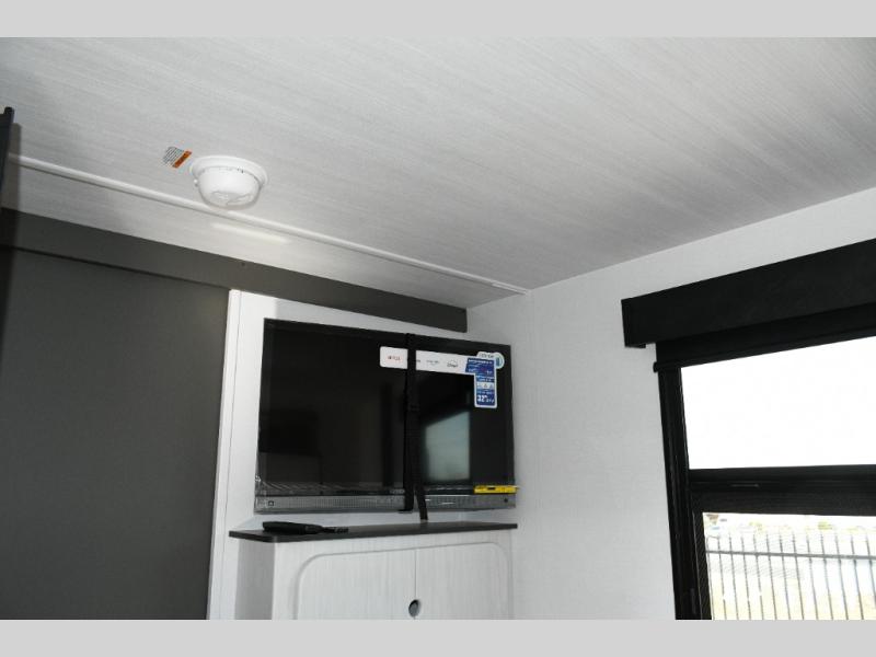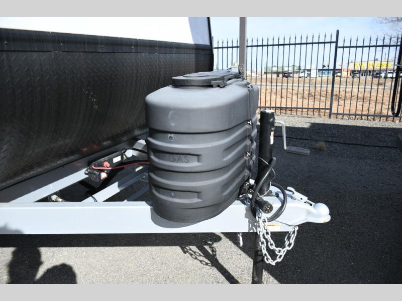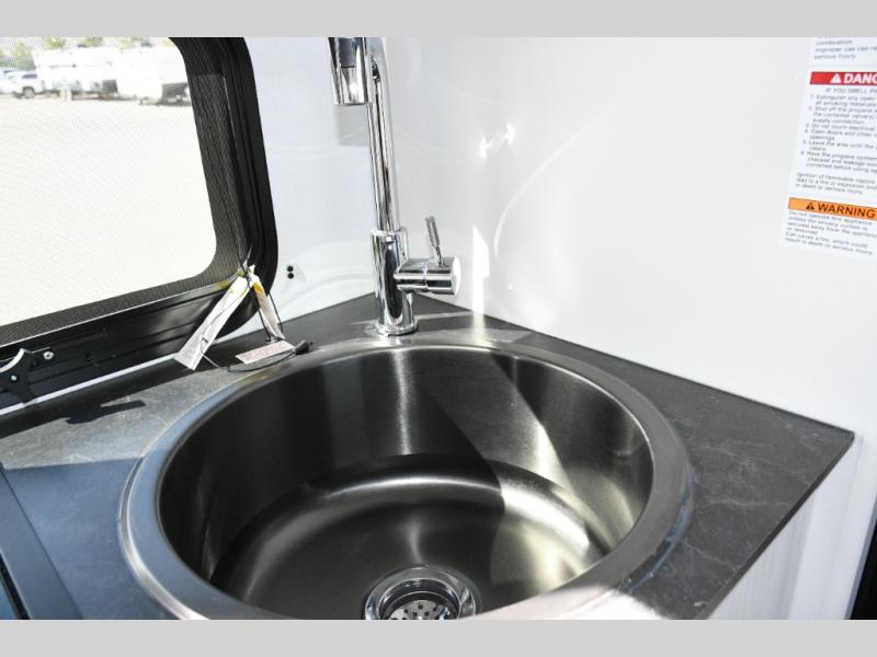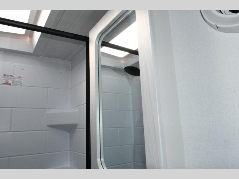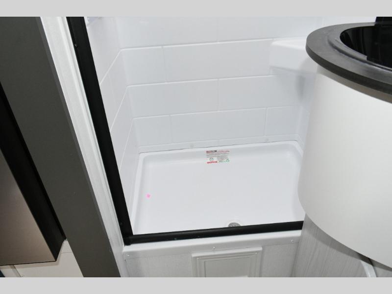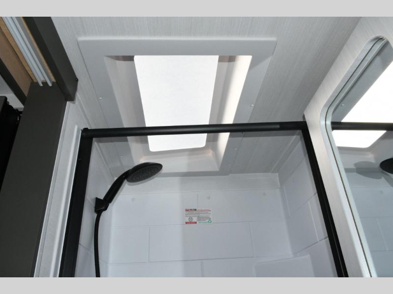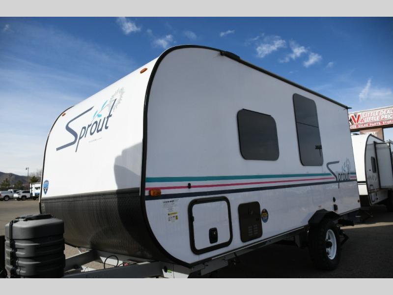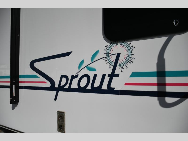 Keystone Sprout travel trailers stand out with their automotive-finished aluminum exterior, walkable roof, and 100% composite floor for long-lasting durability. Tinted safety glass windows, quick-drop stabilizer jacks, and an exterior shower with hot and cold water make campsite setup easy. Inside, enjoy blackout night shades, an impressive 6'6" interior height, ultra-bright LED lighting, and climate control from the 13,500 BTU A/C and 20,000 BTU furnace. A Suburban tankless water heater ensures endless hot water wherever your travels take you.