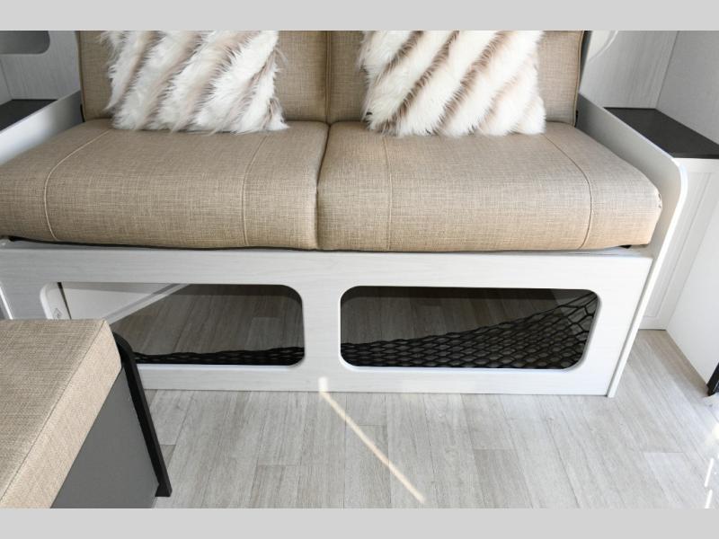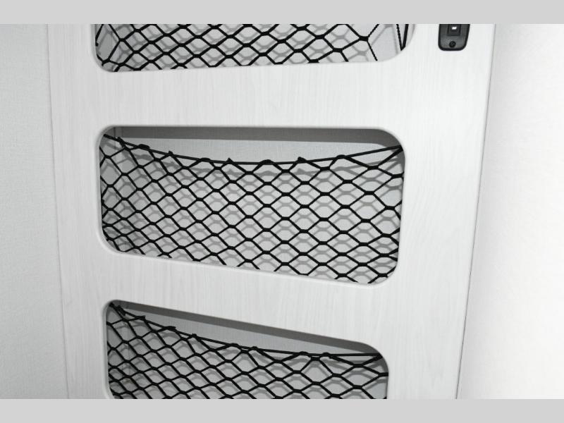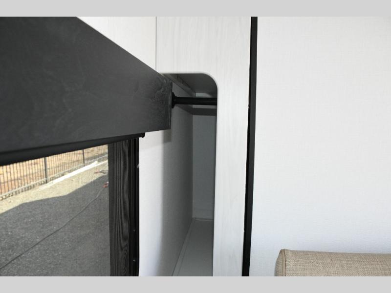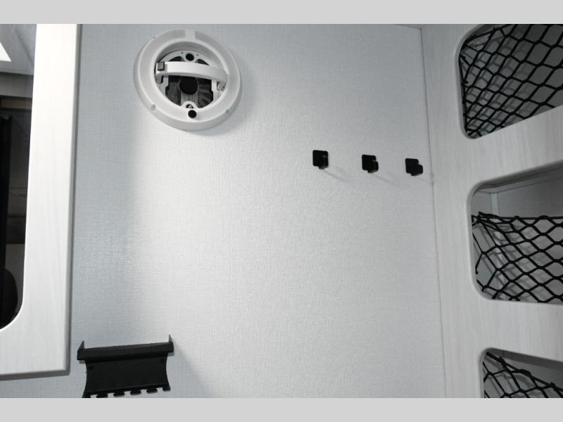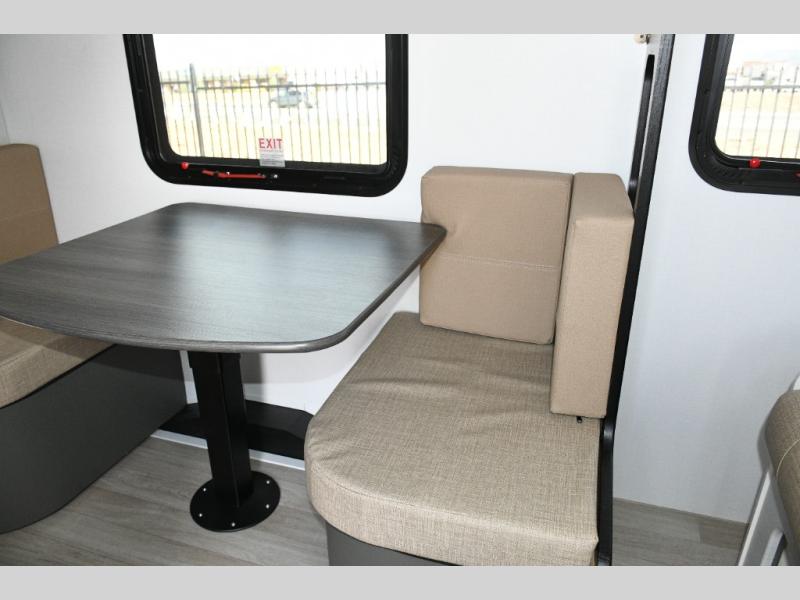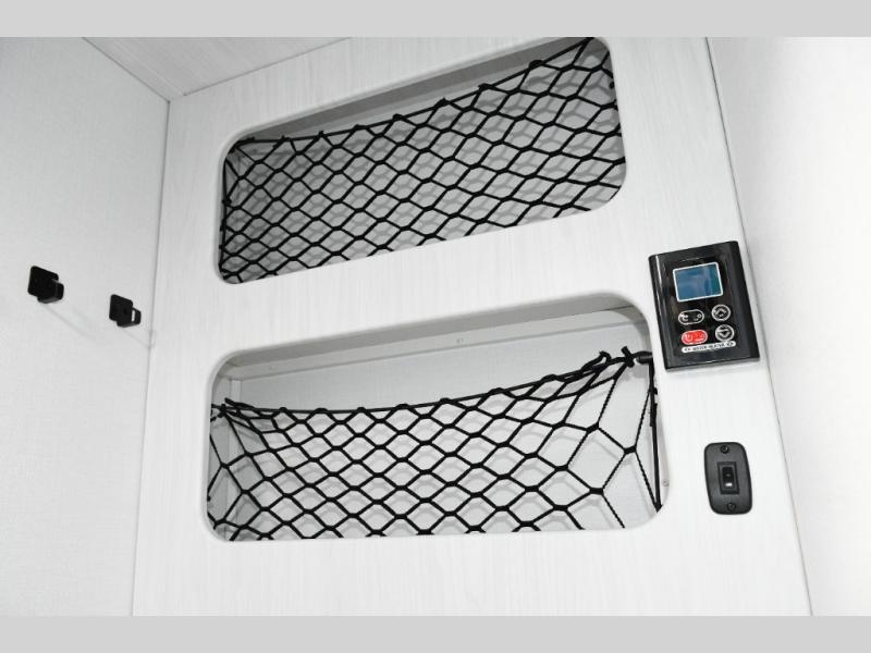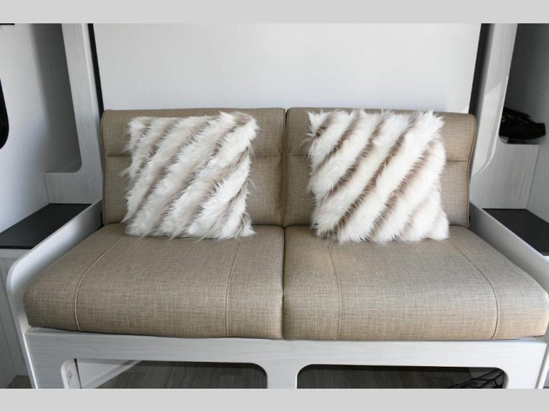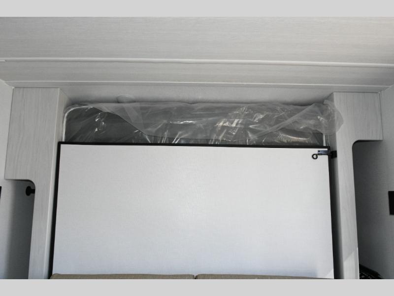 Up front, the fold-down sofa/Murphy bed gives you the best of both worlds—comfortable daytime seating that quickly transforms into a cozy sleeping area at night. Dual bedside closets keep clothing and gear organized, while the booth dinette offers a welcoming place to enjoy meals, play cards, or plan the next day’s adventure. An optional flip-up bunk above the dinette adds extra flexibility if you need more sleeping space.
