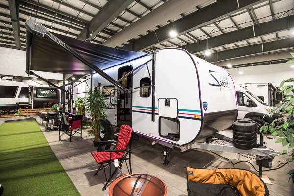 The Sprout travel trailers by Keystone are premium single-axle units that are sure to make an impression at the campground. Each one is built with an exclusive automotive-finished aluminum exterior, a walkable roof, and a 100% composite floor for added durability. There are also tinted safety glass windows, quick drop stabilizer jacks, and an exterior shower with hot and cold water. Inside, you will enjoy blackout night shades and a 6' 6" interior height, along with an ultra bright LED light strip and solid surface countertops in the kitchen. The 13,500 BTU A/C and 20,000 BTU furnace will keep you comfortable, and the Suburban tankless water heater is a convenience you won't want to camp without!