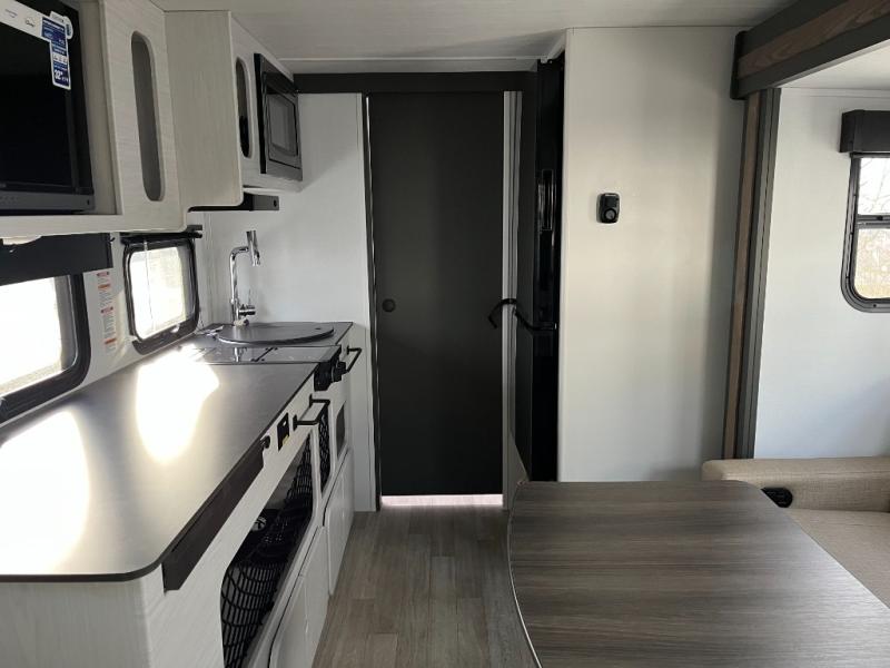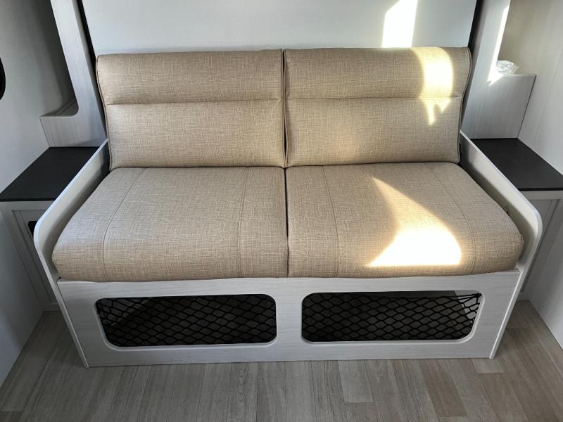 Walk inside the Sprout 18RBS and experience an interior that feels open, welcoming, and thoughtfully arranged. Large panoramic windows flood the space with natural light, bringing the beauty of your surroundings indoors. The multifunctional dinette provides a comfortable spot for meals, game nights, or planning your next adventure, and it easily converts into an extra sleeping area when needed.