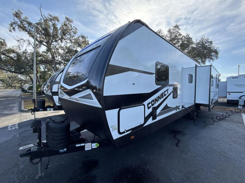 The KZ Connect travel trailer comes with an RV Airflow System which optimizes the airflow for your air conditioner by increasing the airflow by an average of 40%. This improves performance, speeds up cooling times, and reduces noise in your trailer. Some of the other helpful features found on the Connect are the heated, insulated, and enclosed underbelly, the exterior docking station, the fiberglass front cap with front windshield, the 82" interior ceiling height, and the protective front diamond plate. There are some useful technological features, like the two LED motion-sensor lights, the HDMI and USB charge, and the multi-media entertainment system with a DVD player. The KZ Engage is powered by OneControl, and it monitors battery levels and controls slide rooms, the leveling system, the awning, inside/outside lighting, and the TPMS prep.