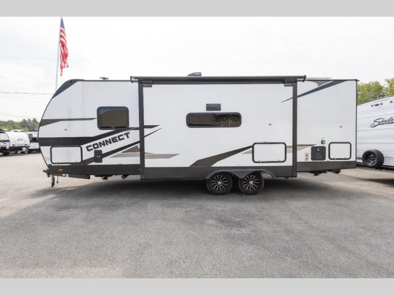 The KZ Connect travel trailer comes with an RV Airflow System which optimizes the airflow for your air conditioner by increasing the airflow by an average of 40%. This improves performance, speeds up cooling times, and reduces noise in your trailer. Some of the other helpful features found on the Connect are the heated, insulated, and enclosed underbelly, the exterior docking station, the fiberglass front cap with front windshield, the 82" interior ceiling height, and the protective front diamond plate. There are some useful technological features, like the two LED motion-sensor lights, the HDMI and USB charge, and the multi-media entertainment system with a DVD player. The KZ Engage is powered by OneControl, and it monitors battery levels and controls slide rooms, the leveling system, the awning, inside/outside lighting, and the TPMS prep.