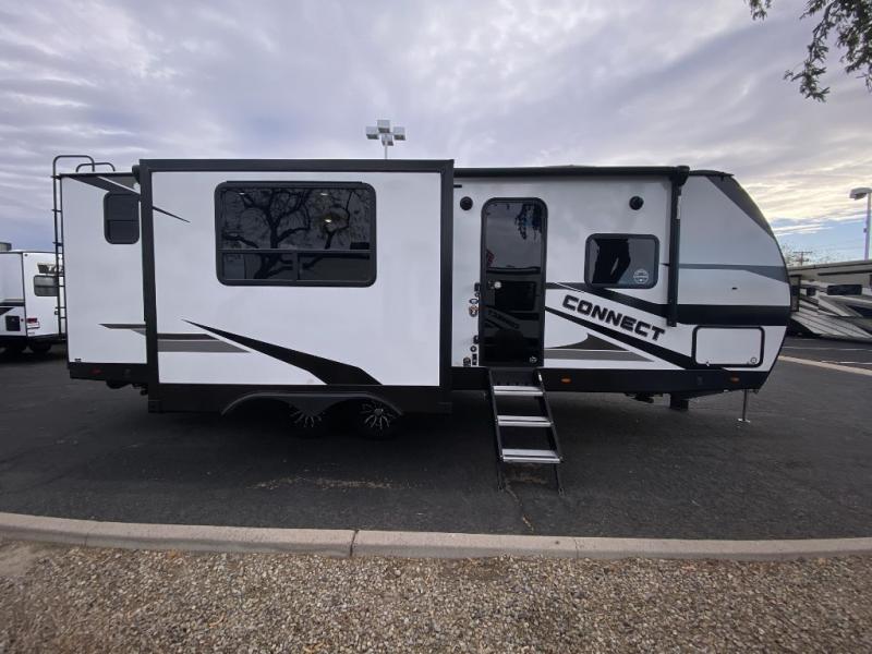 The KZ Connect travel trailer comes with an RV Airflow System which optimizes the airflow for your air conditioner by increasing the airflow by an average of 40%. This improves performance, speeds up cooling times, and reduces noise in your trailer. Some of the other helpful features found on the Connect are the heated, insulated, and enclosed underbelly, the exterior docking station, the fiberglass front cap with front windshield, the 82" interior ceiling height, and the protective front diamond plate. There are some useful technological features, like the two LED motion-sensor lights, the HDMI and USB charge, and the multi-media entertainment system with a DVD player. The KZ Engage is powered by OneControl, and it monitors battery levels and controls slide rooms, the leveling system, the awning, inside/outside lighting, and the TPMS prep.