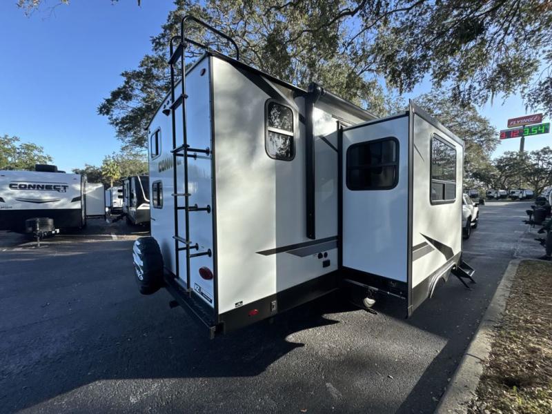 The KZ Connect travel trailer comes with an RV Airflow System which optimizes the airflow for your air conditioner by increasing the airflow by an average of 40%. This improves performance, speeds up cooling times, and reduces noise in your trailer. Some of the other helpful features found on the Connect are the heated, insulated, and enclosed underbelly, the exterior docking station, the fiberglass front cap with front windshield, the 82" interior ceiling height, and the protective front diamond plate. There are some useful technological features, like the two LED motion-sensor lights, the HDMI and USB charge, and the multi-media entertainment system with a DVD player. The KZ Engage is powered by OneControl, and it monitors battery levels and controls slide rooms, the leveling system, the awning, inside/outside lighting, and the TPMS prep.