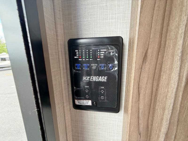 The KZ Connect travel trailer comes with an RV Airflow System which optimizes the airflow for your air conditioner by increasing the airflow by an average of 40%. This improves performance, speeds up cooling times, and reduces noise in your trailer. Some of the other helpful features found on the Connect are the heated, insulated, and enclosed underbelly, the exterior docking station, the fiberglass front cap with front windshield, the 82" interior ceiling height, and the protective front diamond plate. There are some useful technological features, like the two LED motion-sensor lights, the HDMI and USB charge, and the multi-media entertainment system with a DVD player. The KZ Engage is powered by OneControl, and it monitors battery levels and controls slide rooms, the leveling system, the awning, inside/outside lighting, and the TPMS prep.