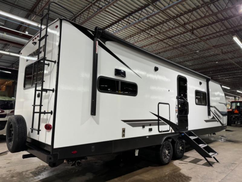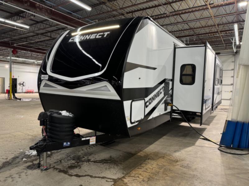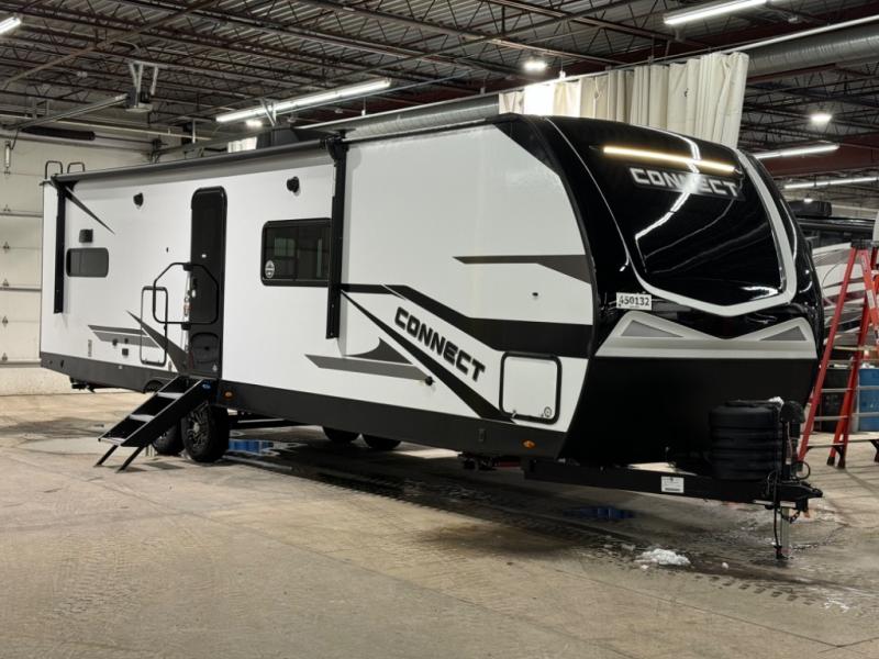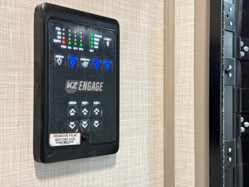 The KZ Connect travel trailer comes with an RV Airflow System which optimizes the airflow for your air conditioner by increasing the airflow by an average of 40%. This improves performance, speeds up cooling times, and reduces noise in your trailer. Some of the other helpful features found on the Connect are the heated, insulated, and enclosed underbelly, the exterior docking station, the fiberglass front cap with front windshield, the 82" interior ceiling height, and the protective front diamond plate. There are some useful technological features, like the two LED motion-sensor lights, the HDMI and USB charge, and the multi-media entertainment system with a DVD player. The KZ Engage is powered by OneControl, and it monitors battery levels and controls slide rooms, the leveling system, the awning, inside/outside lighting, and the TPMS prep.