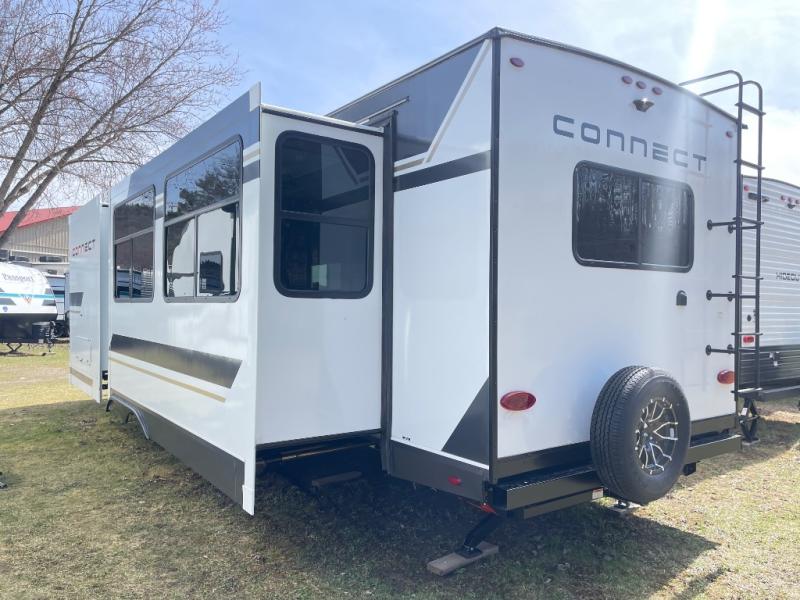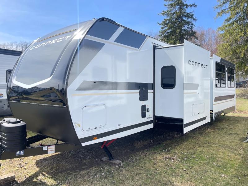 The KZ Connect travel trailer comes with an RV Airflow System which optimizes the airflow for your air conditioner by increasing the airflow by an average of 40%. This improves performance, speeds up cooling times, and reduces noise in your trailer. Some of the other helpful features found on the Connect are the heated, insulated, and enclosed underbelly, the exterior docking station, the fiberglass front cap with front windshield, the 82" interior ceiling height, and the protective front diamond plate. There are some useful technological features, like the two LED motion-sensor lights, the HDMI and USB charge, and the multi-media entertainment system with a DVD player. The KZ Engage is powered by OneControl, and it monitors battery levels and controls slide rooms, the leveling system, the awning, inside/outside lighting, and the TPMS prep.