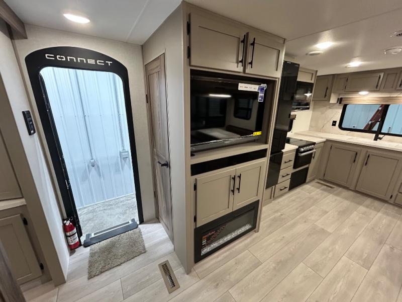 The KZ Connect travel trailer comes with an RV Airflow System which optimizes the airflow for your air conditioner by increasing the airflow by an average of 40%. This improves performance, speeds up cooling times, and reduces noise in your trailer. Some of the other helpful features found on the Connect are the heated, insulated, and enclosed underbelly, the exterior docking station, the fiberglass front cap with front windshield, the 82" interior ceiling height, and the protective front diamond plate. There are some useful technological features, like the two LED motion-sensor lights, the HDMI and USB charge, and the multi-media entertainment system with a DVD player. The KZ Engage is powered by OneControl, and it monitors battery levels and controls slide rooms, the leveling system, the awning, inside/outside lighting, and the TPMS prep.