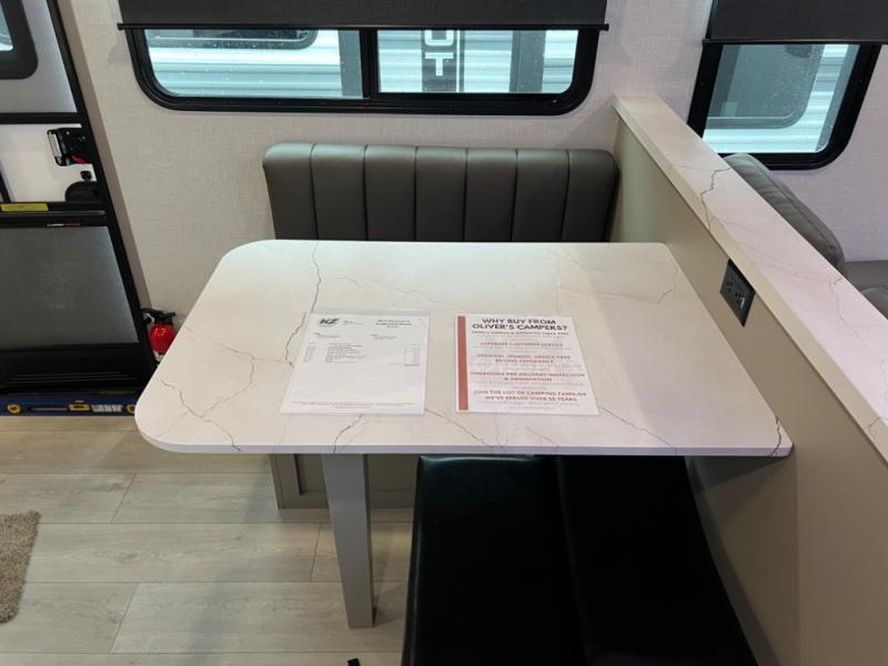 The KZ Connect travel trailer comes with an RV Airflow System which optimizes the airflow for your air conditioner by increasing the airflow by an average of 40%. This improves performance, speeds up cooling times, and reduces noise in your trailer. Some of the other helpful features found on the Connect are the heated, insulated, and enclosed underbelly, the exterior docking station, the fiberglass front cap with front windshield, the 82" interior ceiling height, and the protective front diamond plate. There are some useful technological features, like the two LED motion-sensor lights, the HDMI and USB charge, and the multi-media entertainment system with a DVD player. The KZ Engage is powered by OneControl, and it monitors battery levels and controls slide rooms, the leveling system, the awning, inside/outside lighting, and the TPMS prep.